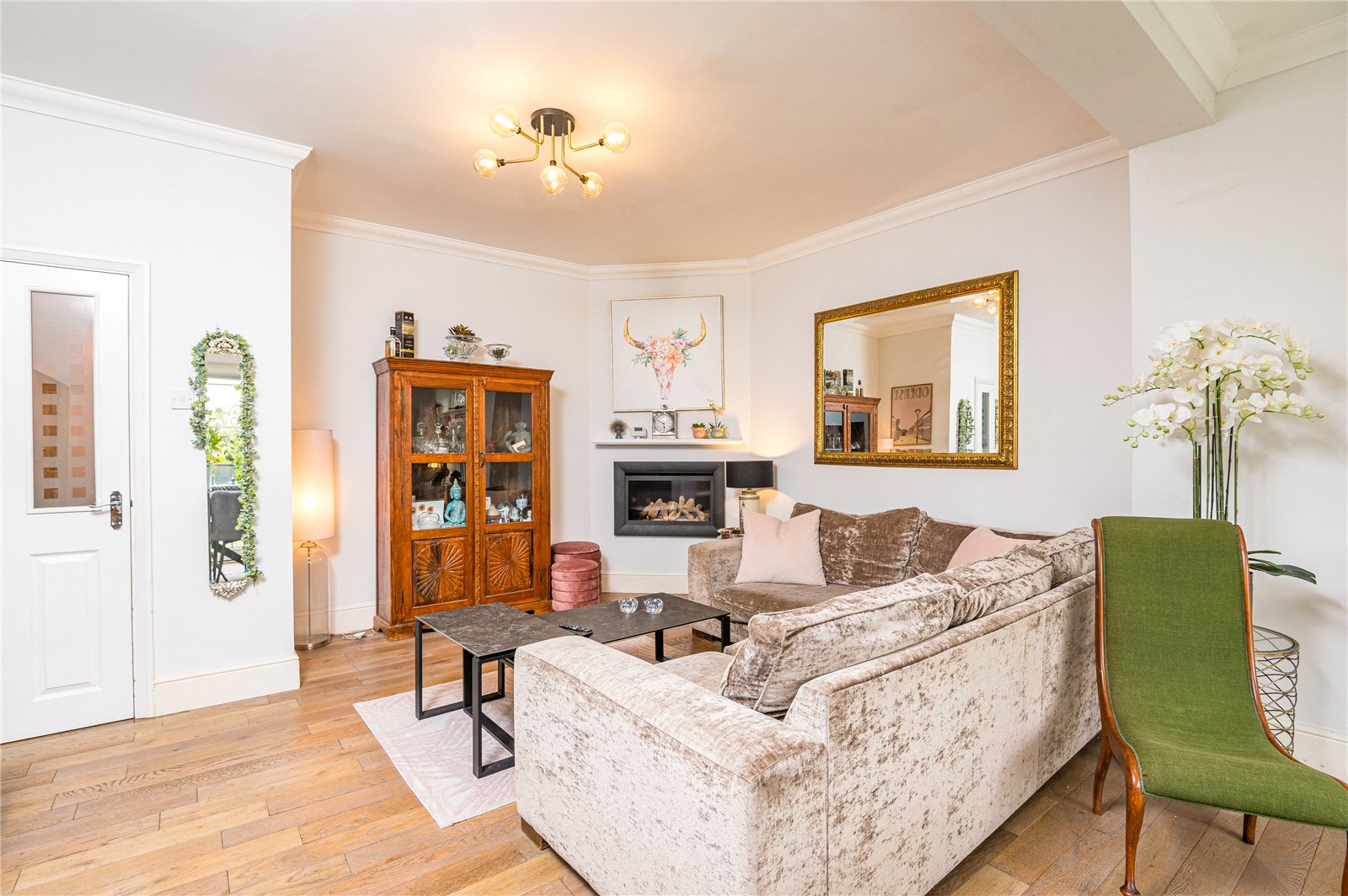 Overall size. This charming and welcoming reception hall is approached via panelled front door with leaded light windows to either side. Turning staircase to first floor, storage cupboard below with radiator. Further radiator with decorative cover. Chair rail with panelling below. Built in storage cupboard. Built in cupboard housing modern gas fired central fired heating boiler and service meters. Solid oak wood floor. Doors to accommodation.