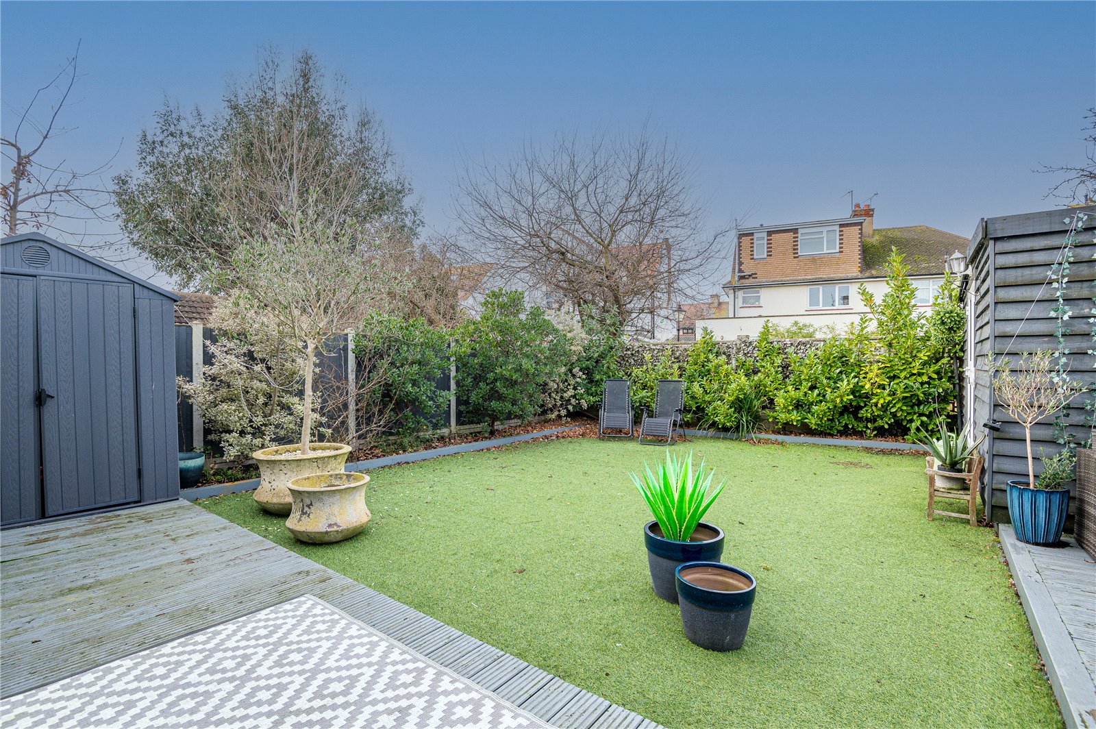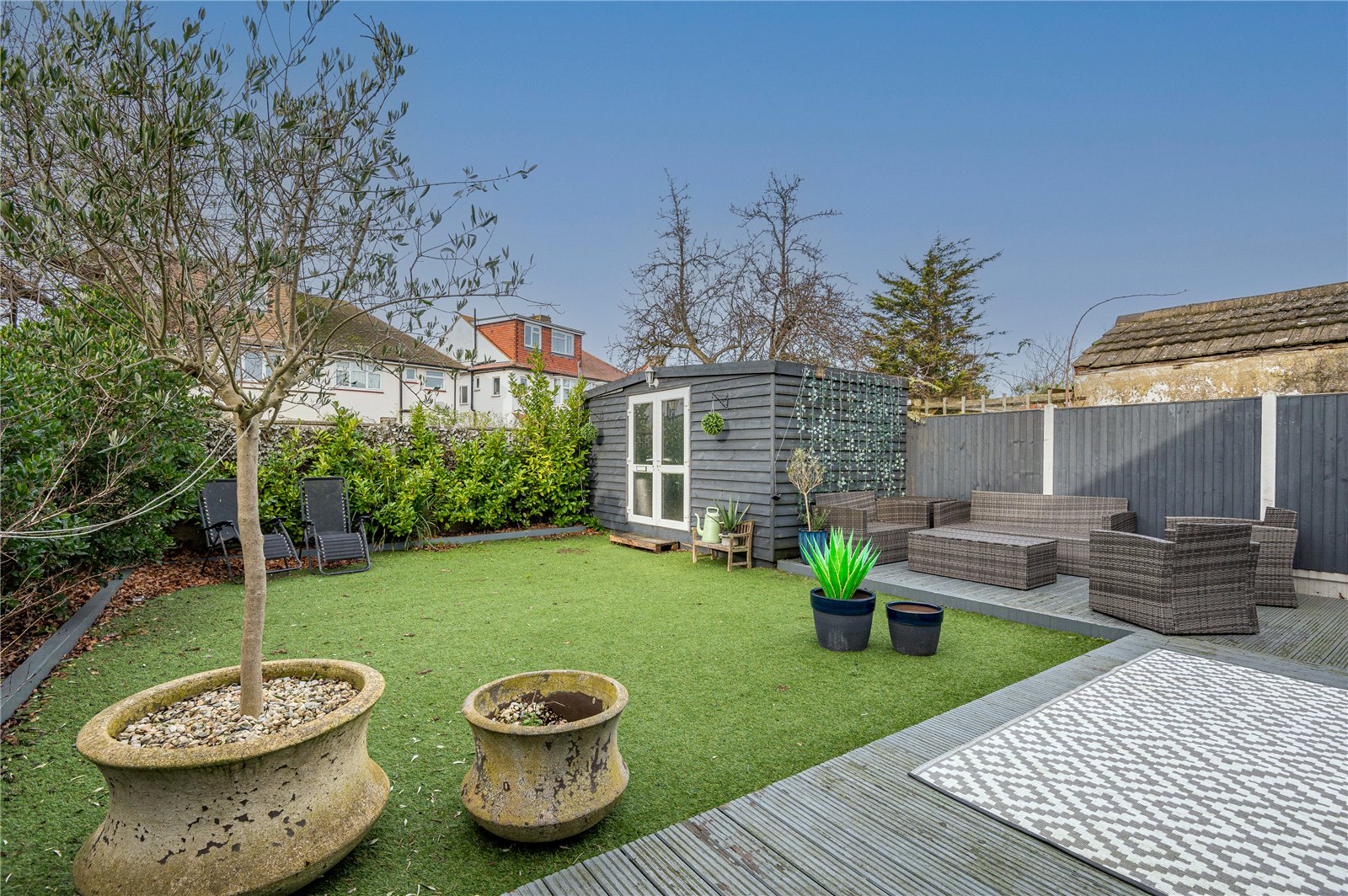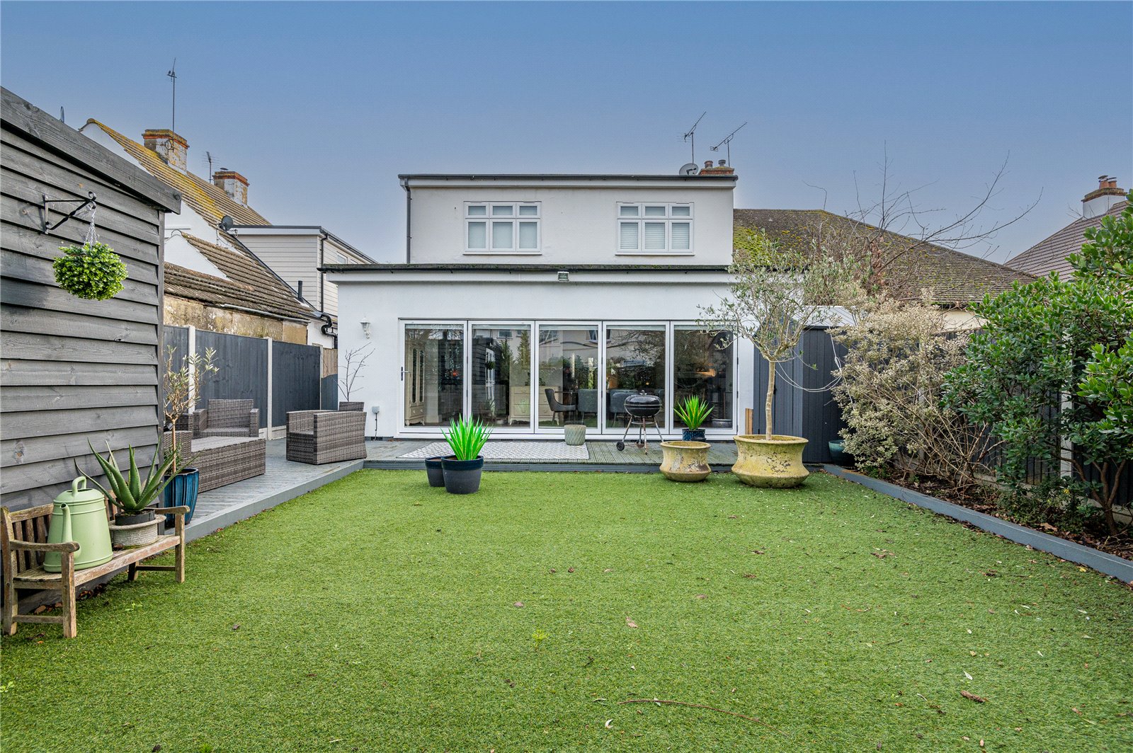 The property benefits from a easy maintenance and good size West backing rear garden with laid to extensive decking areas and high quality artificial lawn. Planted borders. External power point. Outside lighting. Side entrance.