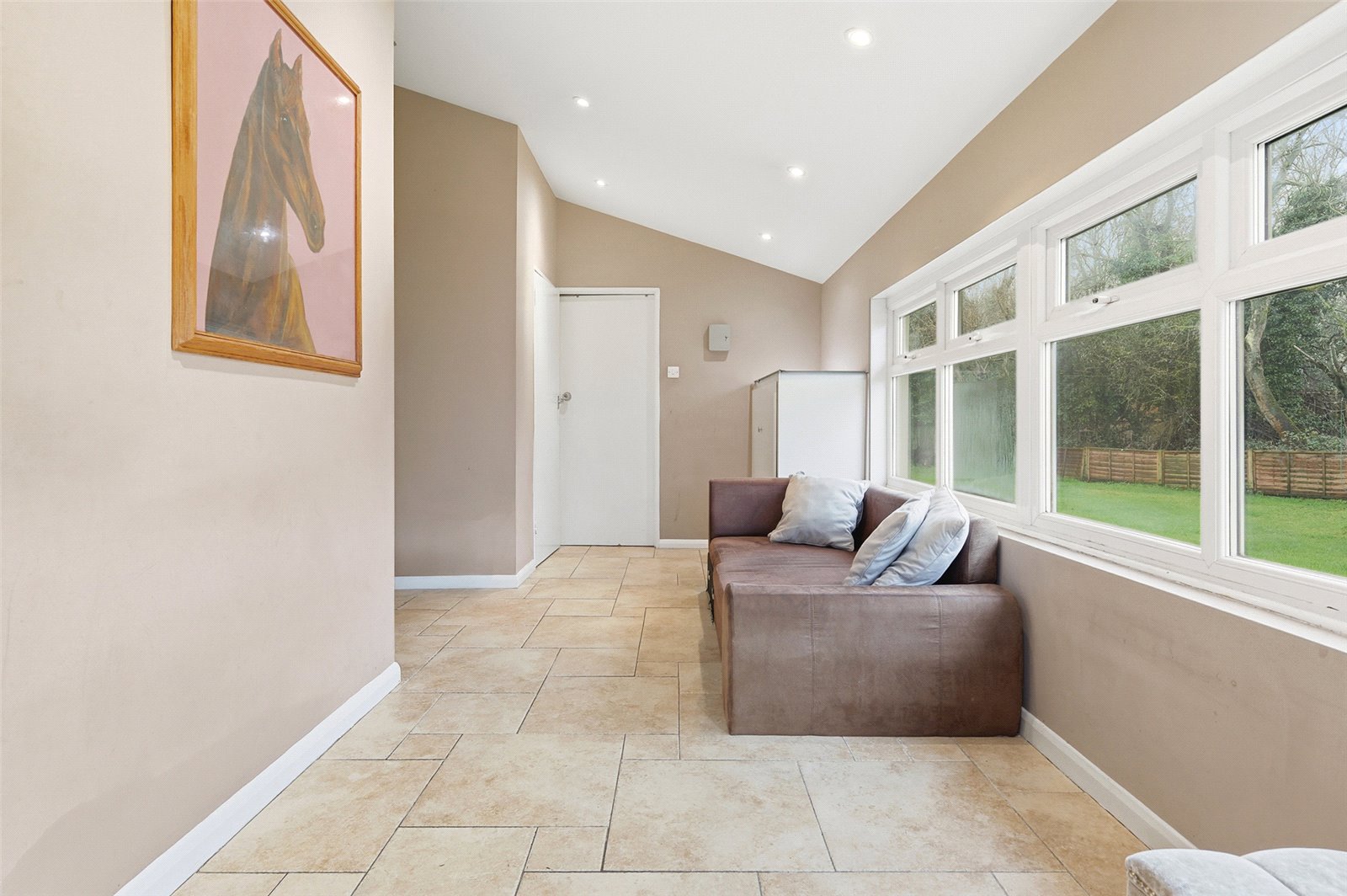 max. Double glazed stable door to the front aspect. Upvc double glazed window adjacent and to the side aspect. Smooth plastered walls and ceiling with inset spot lighting. Ceramic tiled floor with underfloor heating. Alarm control panel. Built-in storage cupboard. Doors to rooms.