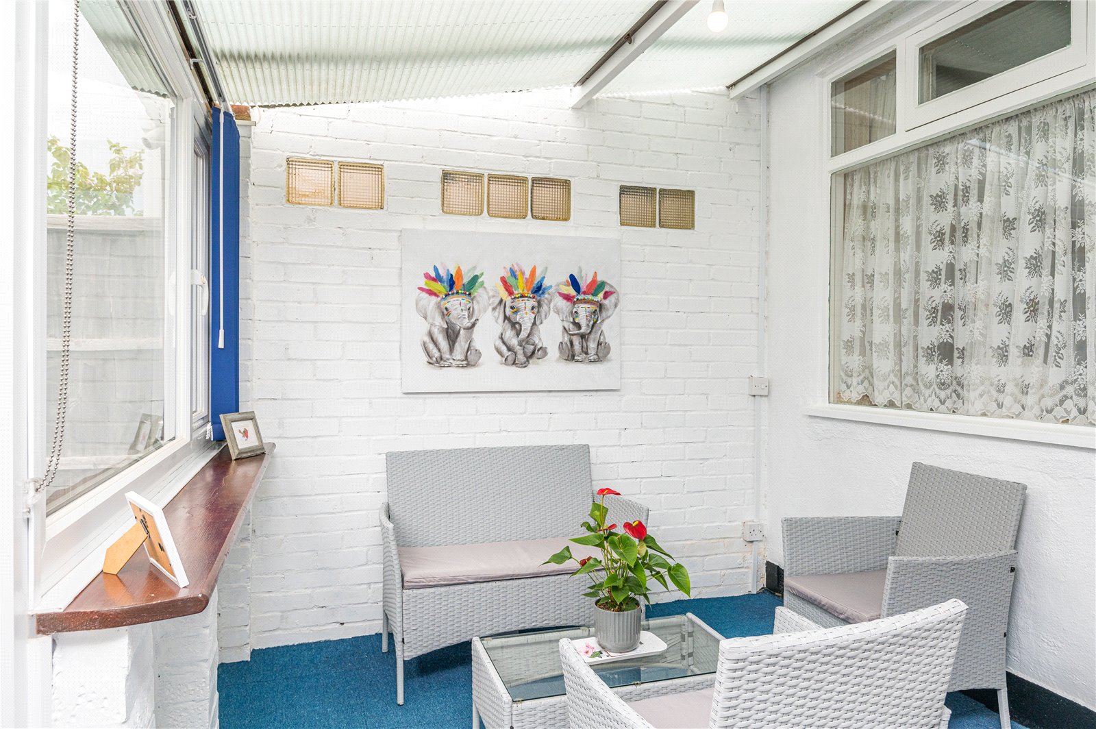 Double glazed door leading to the rear garden with windows adjacent. Exposed brickwork wall, vaulted perspex 'reflectorlite' roof.