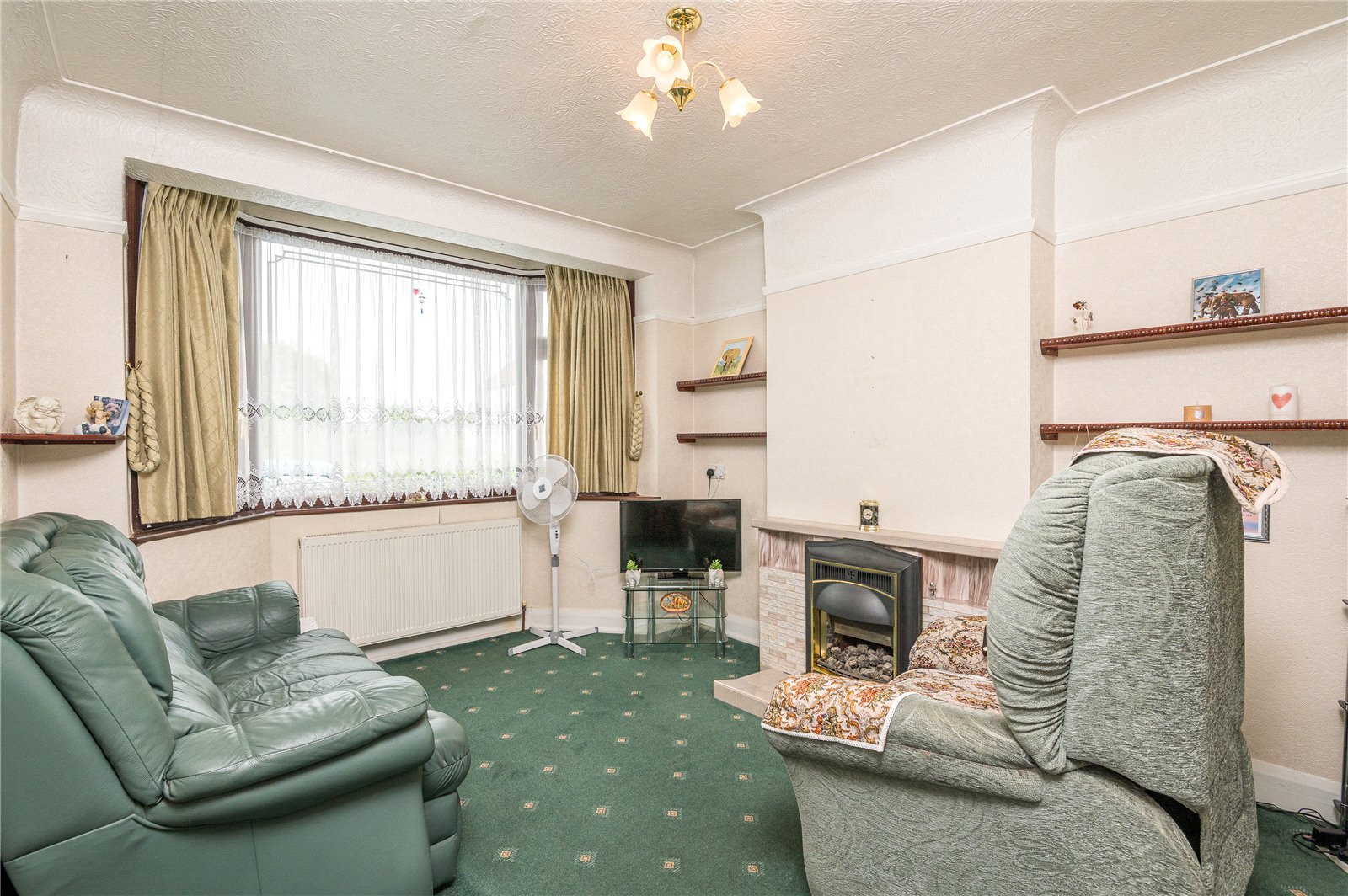 Upvc double glazed bay window to front. Feature tiled fireplace with inset coal effect fire. Television aerial point. Radiator. Picture rail. Coved ceiling.
