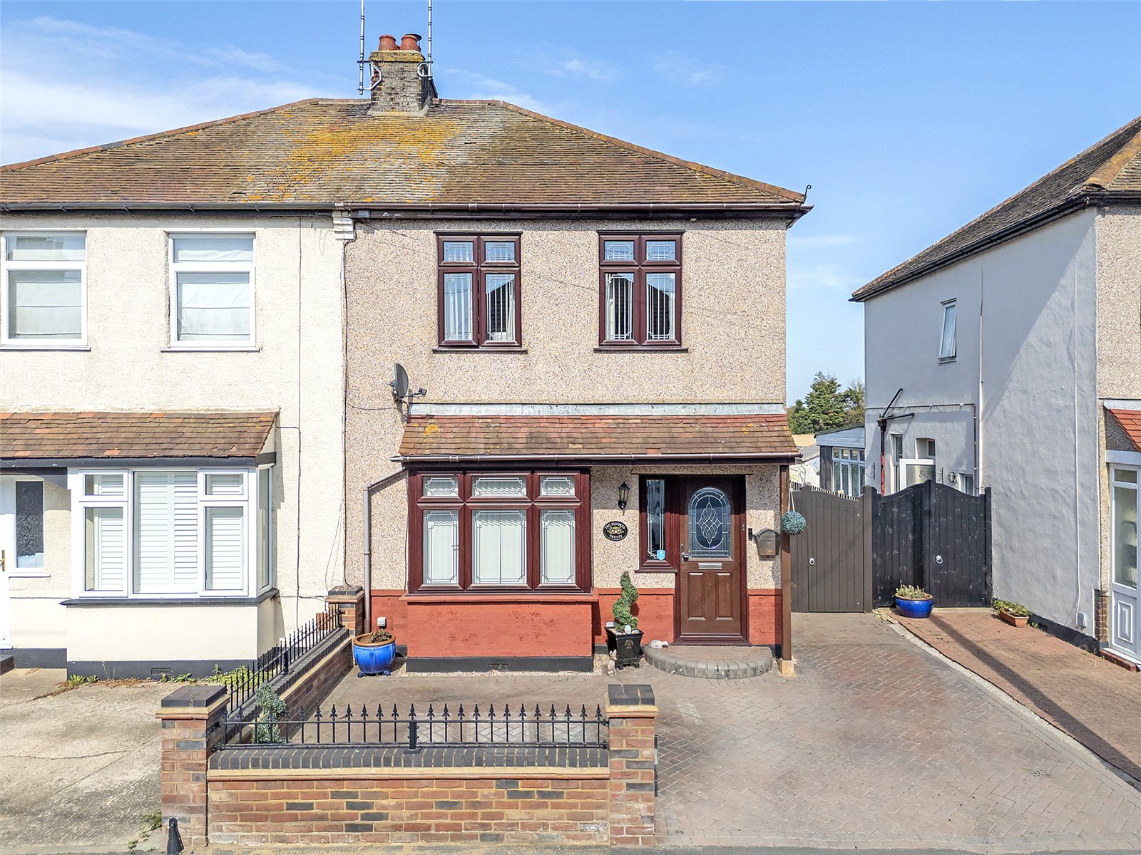 Extensively laid to herringbone brick block paviour, with attractive front wall with wrought iron railing. Double gated side access to the rear of the property.