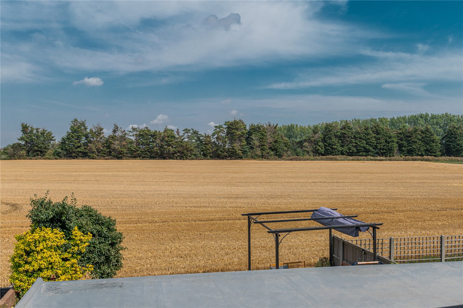 The rear garden has been attractively landscaped and commences from the sun loggia (to the rear of the kitchen/family room with a crazy paved patio terrace. The garden has panoramic open farmland views and is attractively laid to lawn with walled and fenced side boundarties and an open rear border. There is a contemporary gazebo covered sun trap patio terrace taking full advantage of the evening views. Timber retained raised shrub borders.