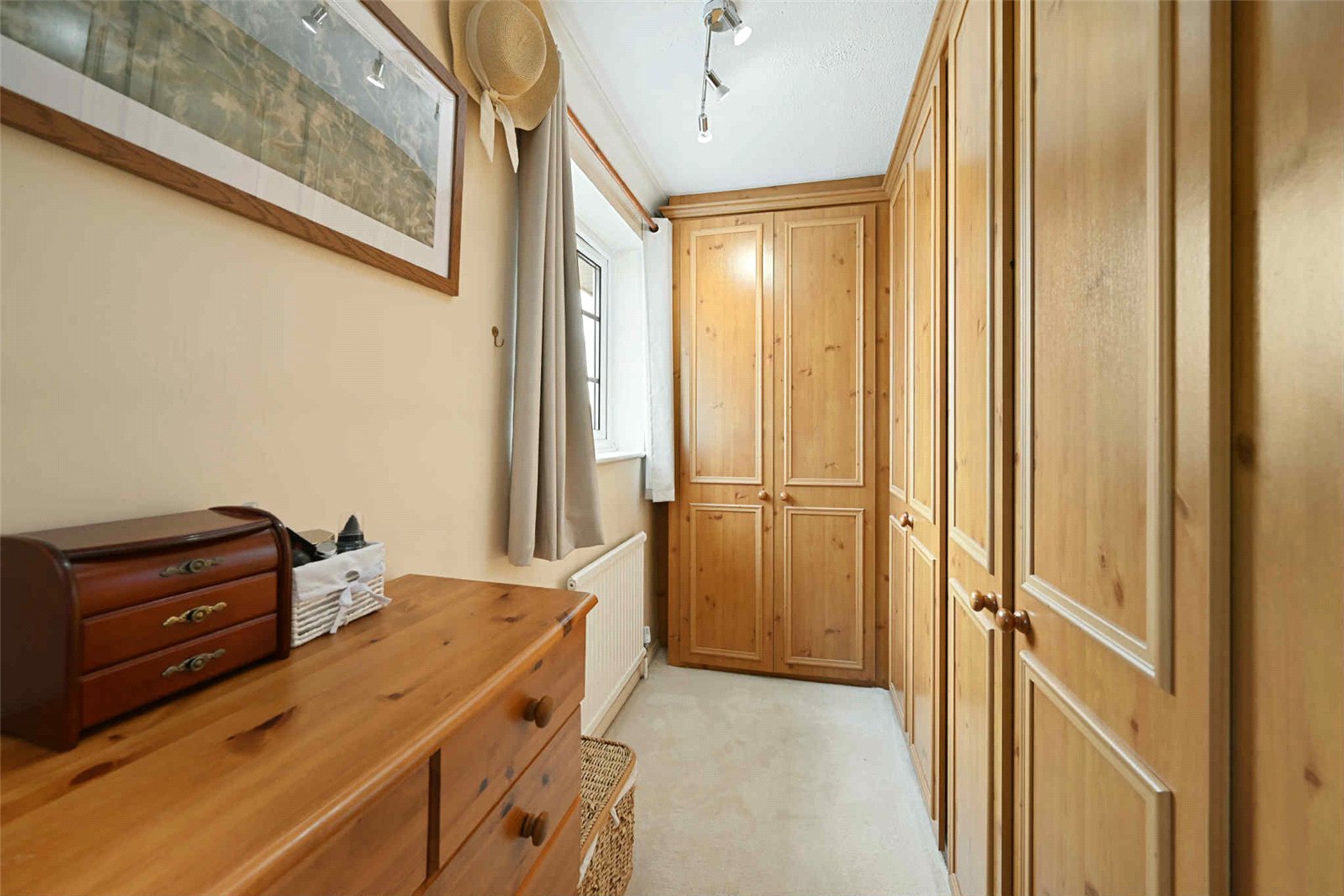 uPVC double glazed multi pane window to front. Built in single wardrobe with hanging and shelved storage space. Radiator. Dado rail. Coved cornice to ceiling.