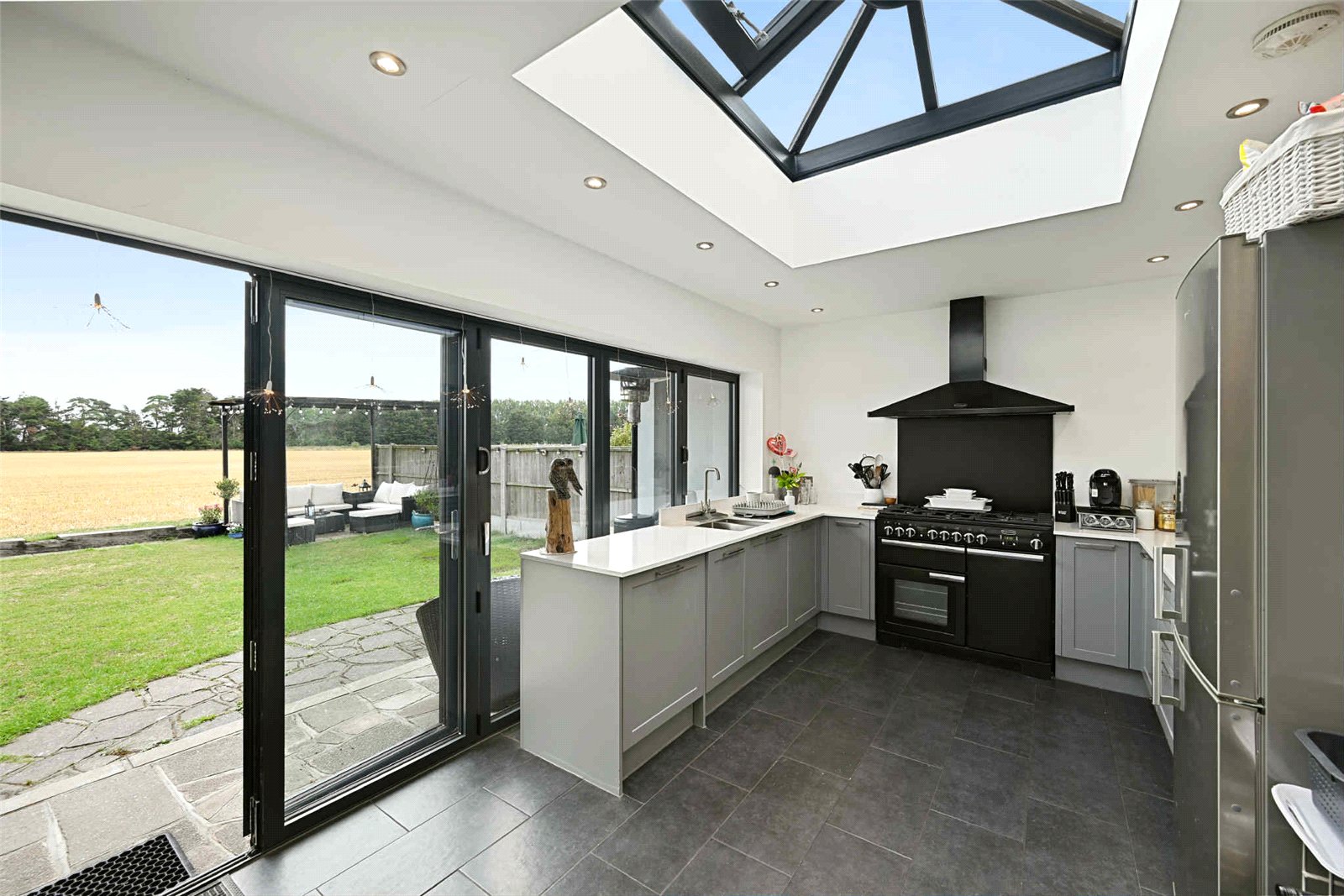 Panoramic open farmland views from this completely remodelled & extended 'forever' family home offering generous double bedrooms, a showstopping lanterned kitchen/family room, a large private driveway to garage and a gorgeous landscaped garden. Internal viewing is highly advised.