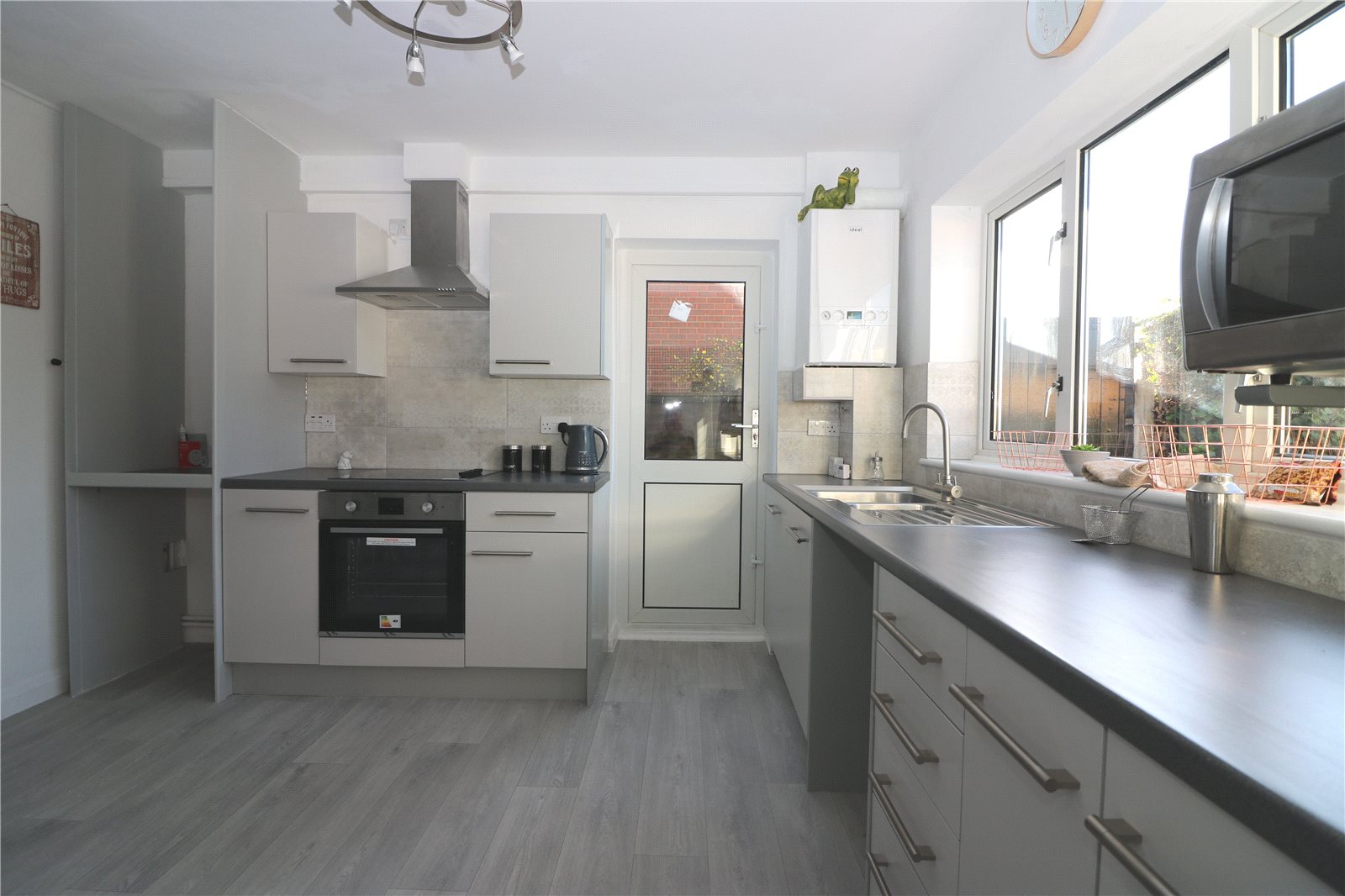 New eco gas boiler produces fast efficient central heating and on demand hot water. The property has a new consumer unit protecting the electrical installation. Fully redecorated in Dulux Diamond White with doors finished in Dolphin Grey (doors have top spec quality chromed door furniture)