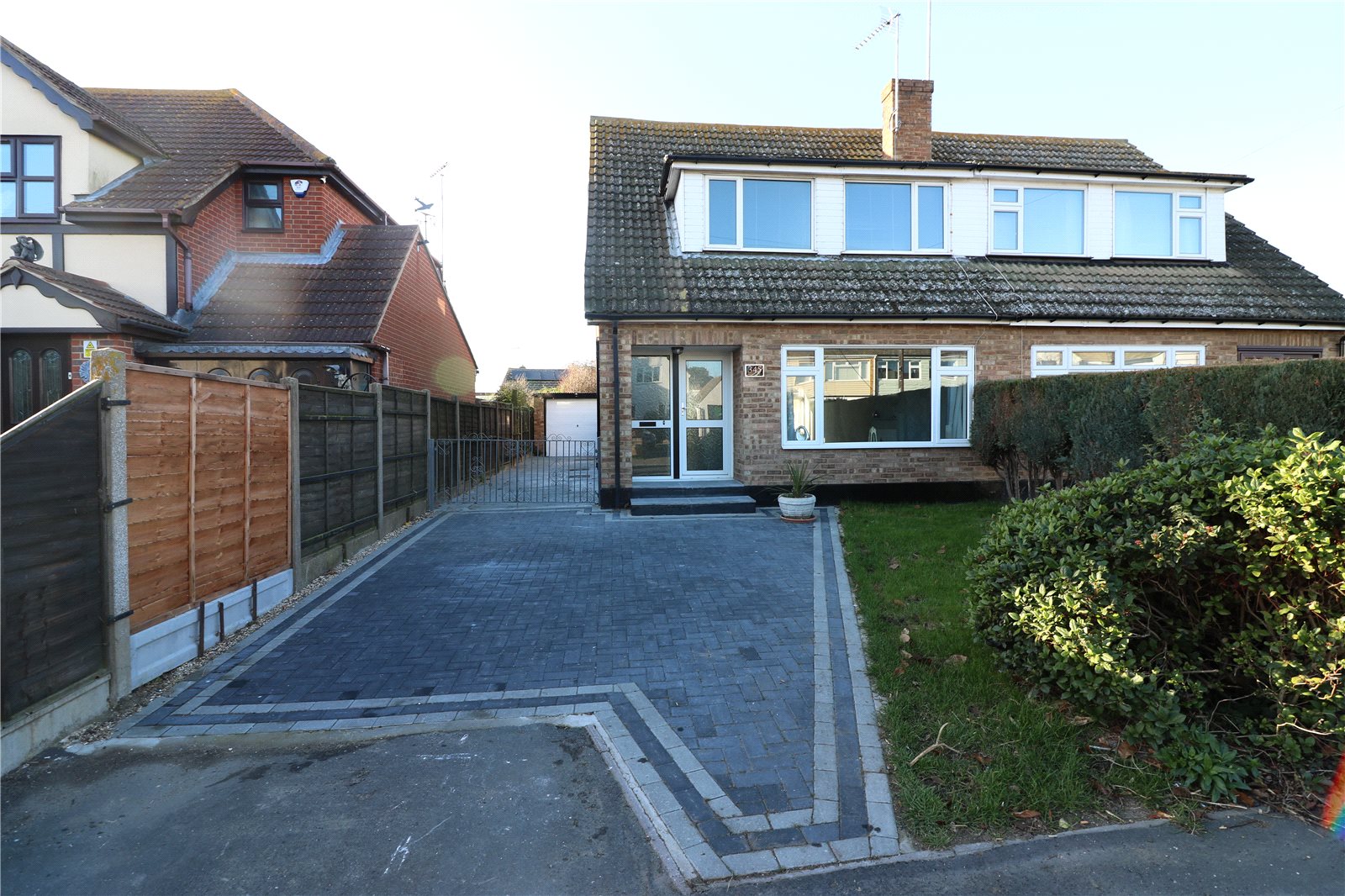 Spacious Family home in an idyllic position on the cusp of Barling with grazing horses adjacent. Grey and black front drive for two cars with further parking spaces along side of the property leading to a detached garage which has light and power.
