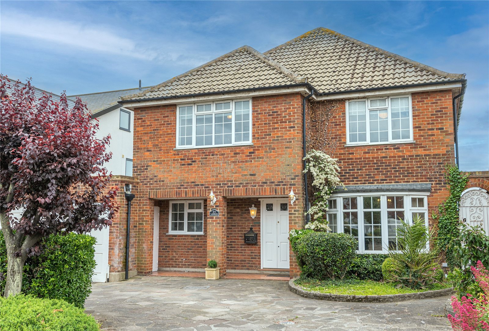 This attractive four double bedroom, four reception room detached Marine residence is situated in a commanding seafront setting, affording fabulous views across the Thames Estuary and Kent coastline. This wonderful family home is arranged over three floors and offers versatile living, with most rooms enjoying sea views. The property is in need of some updating and offers huge potential for a buyer wishing to create their own Grand Design and "Forever" Dream Home. Large established south backing rear garden plus a double garage.
