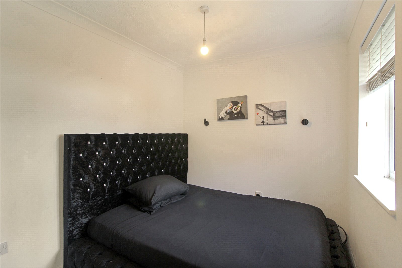 UPVC double glazed window to rear aspect with view of the communal gardens. Carpet to floor, skirting, and built-in wardrobe space. Smooth plastered walls and ceiling, completed with coving and ceiling light.