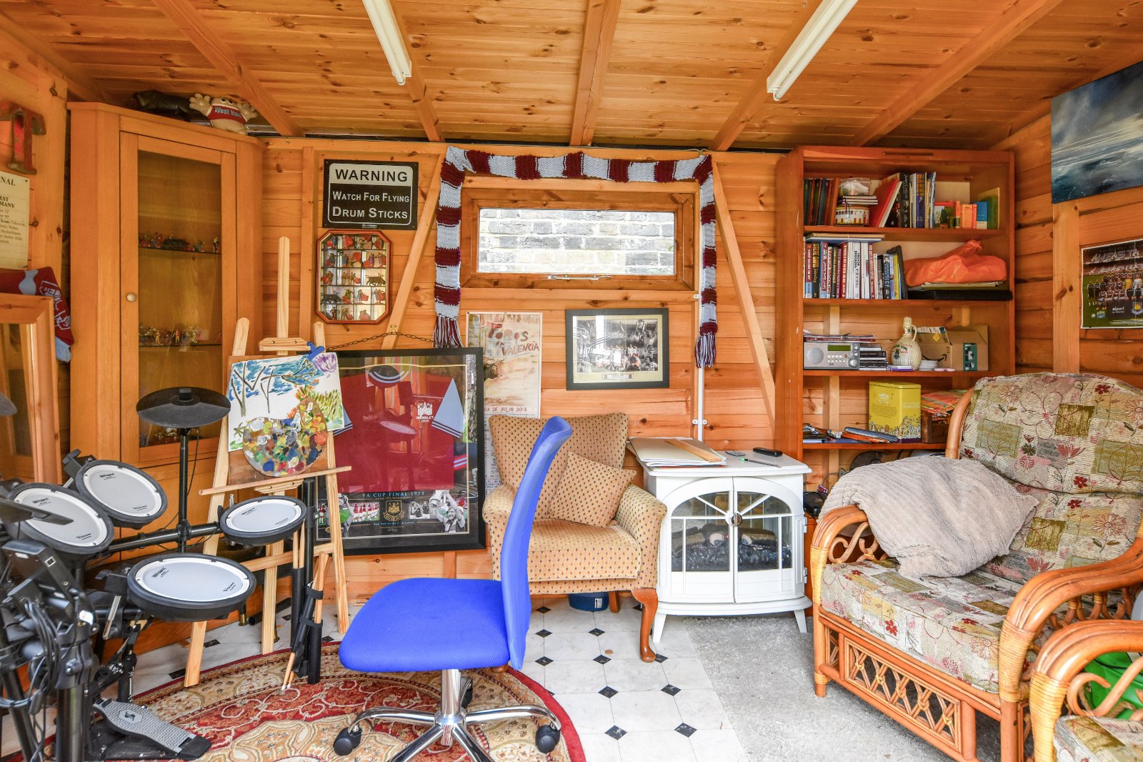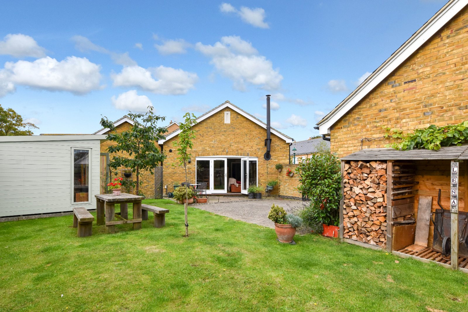 Accessed via the open plan Living/Kitchen with good size paved patio seating area. Attractive lawned area with feature brick boundaries. Outside water tap. Attractive Summer House / Cabin to remain with power and lighting, with windows to three aspects and approached via a pair of multi pane glazed doors. Large wood store to the side of the Garage.