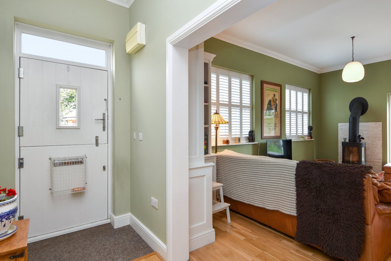 Double glazed sash style windows to side aspect inset with impressive made to measure plantation blinds. 'Split stable style' composite door inset with double glazed insert providing access to 'Bedroom Garden'. Feature engineered oak wood flooring. Radiator. Coving to smooth plastered ceiling. Panelled door to; '