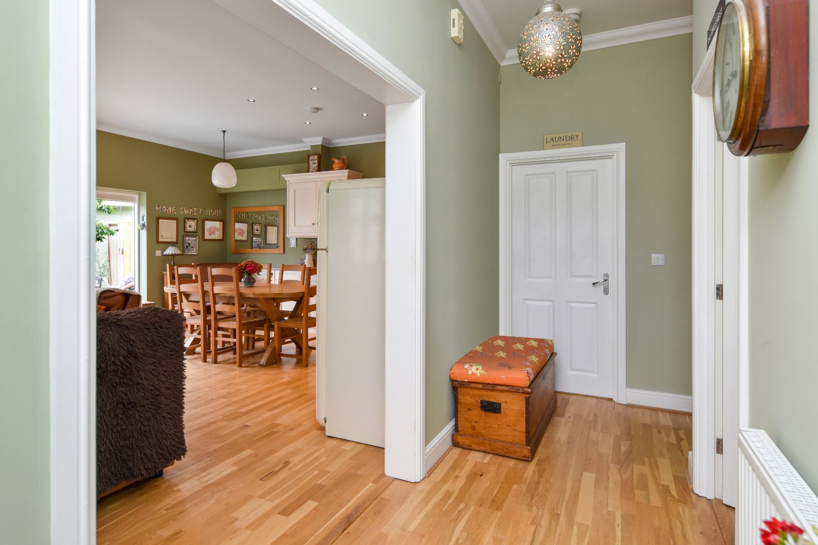 Double width open access to open plan Living / Kitchen / Dining area. Feature engineered oak wood flooring. Panelled doors to Bedrooms, Utility Room and Bathroom. Further panelled door to large 'walk in' airing cupboard with linen shelving (measuring 6'5 x 3'3). Radiator. Thermostat control panel. Coving to smooth plastered ceiling with access to loft space (Agents Note, access was not gained at the time of inspection however we are aware that there is a uPVC double glazed window to side aspect.)