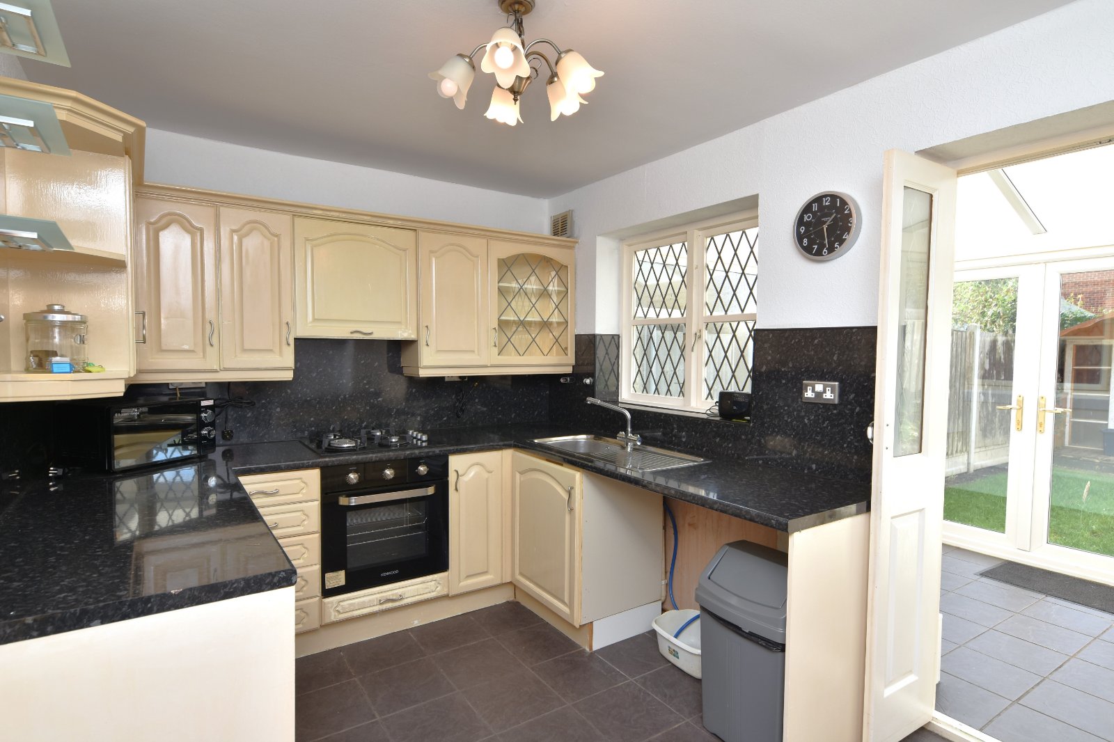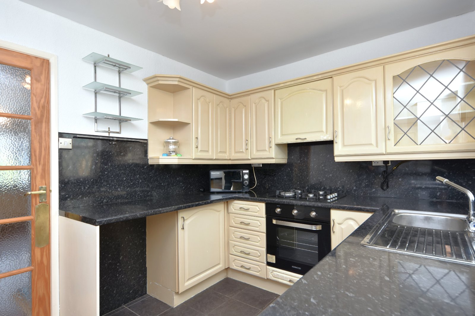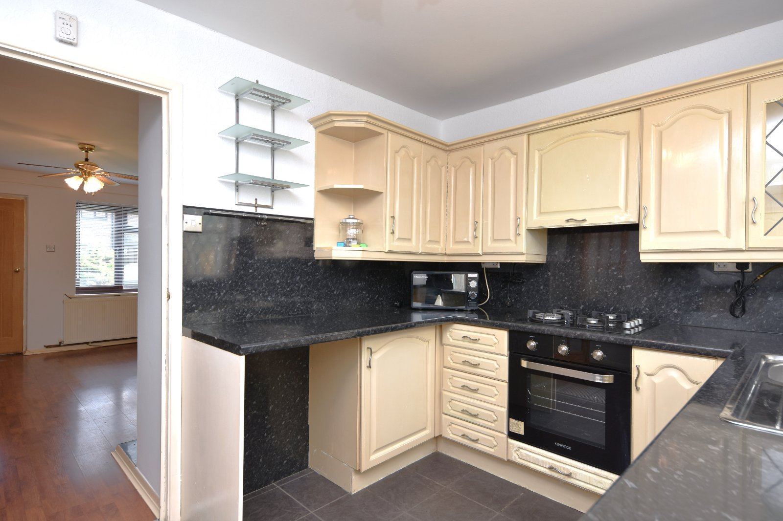 uPVC double glazed window to rear aspect. The Kitchen is fitted with a range of base and eye level units with working surfaces over inset with sink unit with mixer tap over. 'Kenwood' electric oven with four ring 'Kenwood' gas hob above. Concealed extractor canopy. Space for under unit fridge freezer. Doors to understairs storage cupboard. Smooth plastered ceiling. Door to;