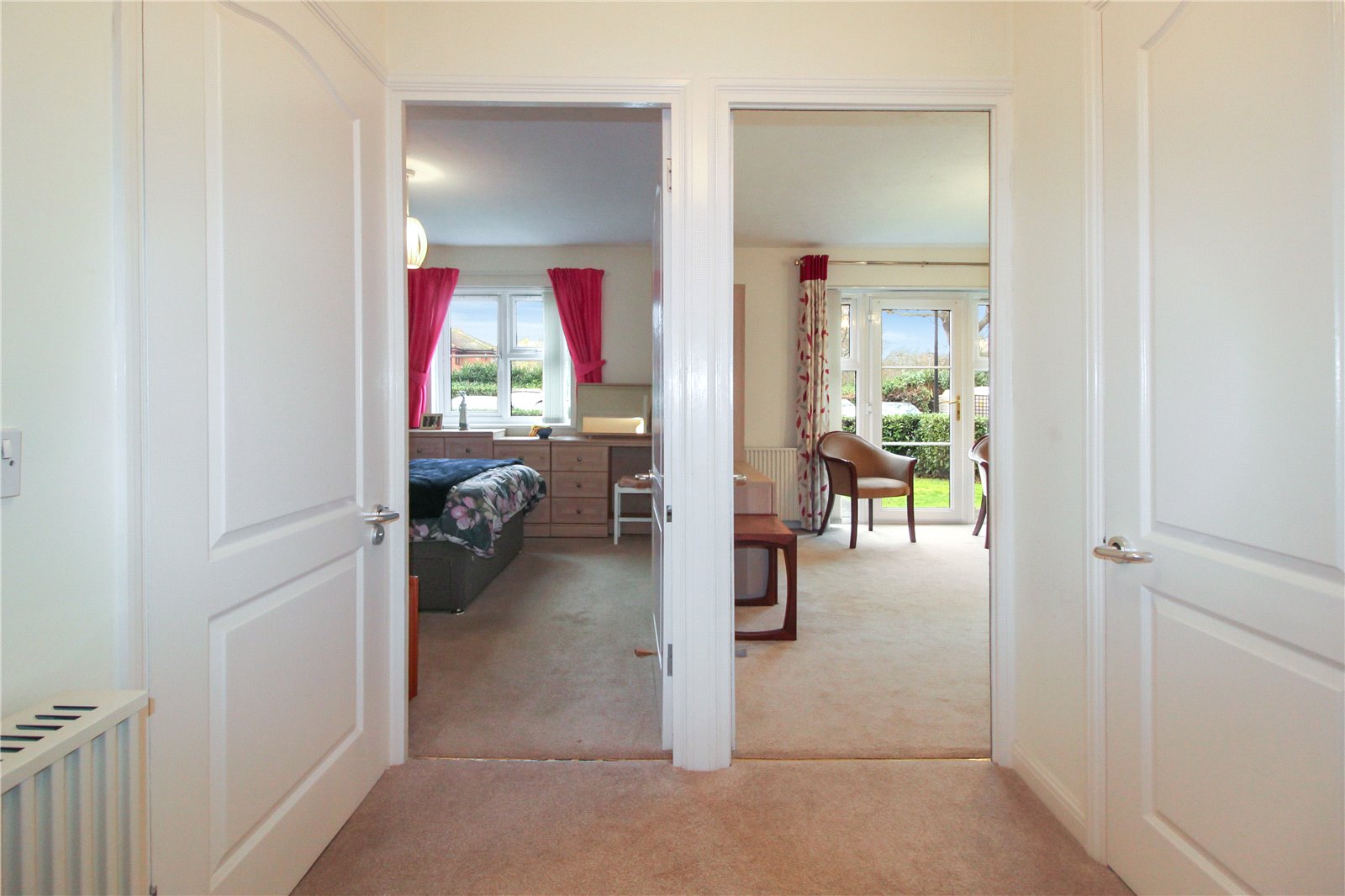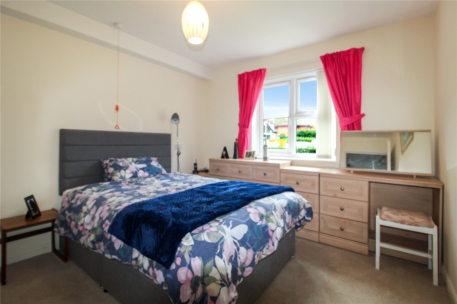 uPVC double glazed window to rear, West-Facing over communal gardens and car park. Carpet to floor. Skirting. Careline pull chord. Smooth plastered walls. Ceiling light. NB: Bedroom furniture optional.