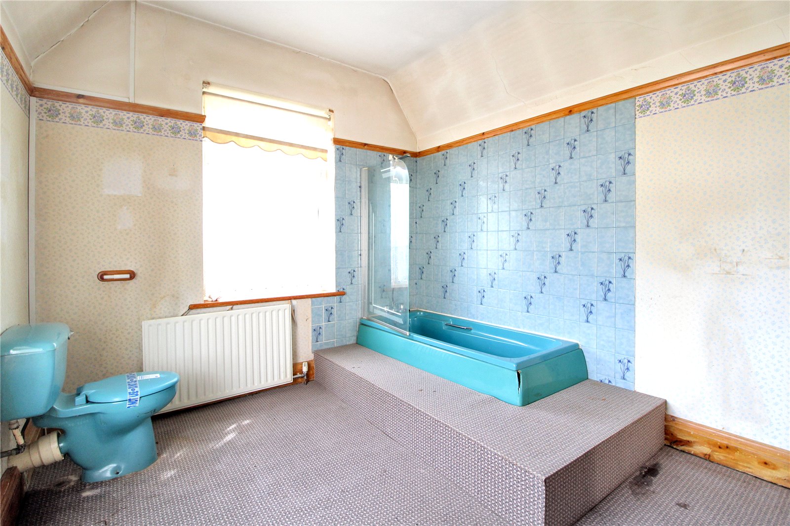 Enter though either second bedroom or hallway. Three piece bathroom including raised bath, sink and WC. Carpeted flooring, radiator, and double glazed windows to rear and side aspect. Potential to make this bathroom into third bedroom.