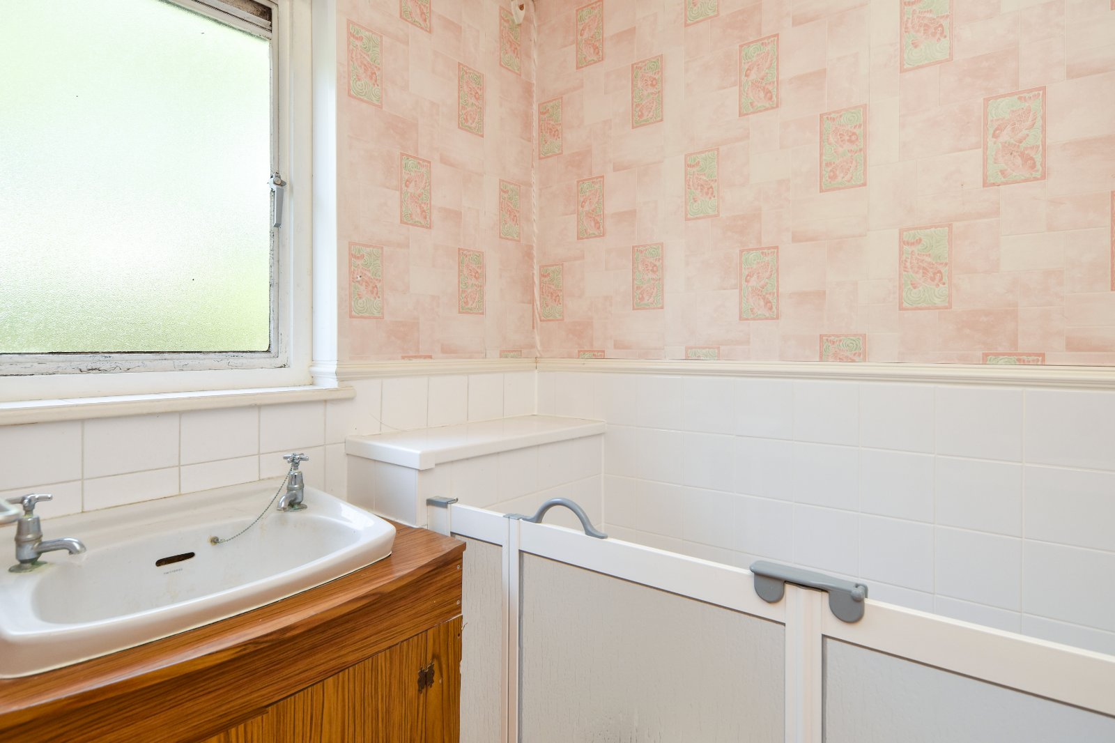 Obscure glazed window to rear aspect. Low level flush wc, panelled enclosed bath and 'walk in adapted' shower enclosure with low level doors, wash hand basin. Concealed water tank (can be accessed via 'false' wall). Textured ceiling.