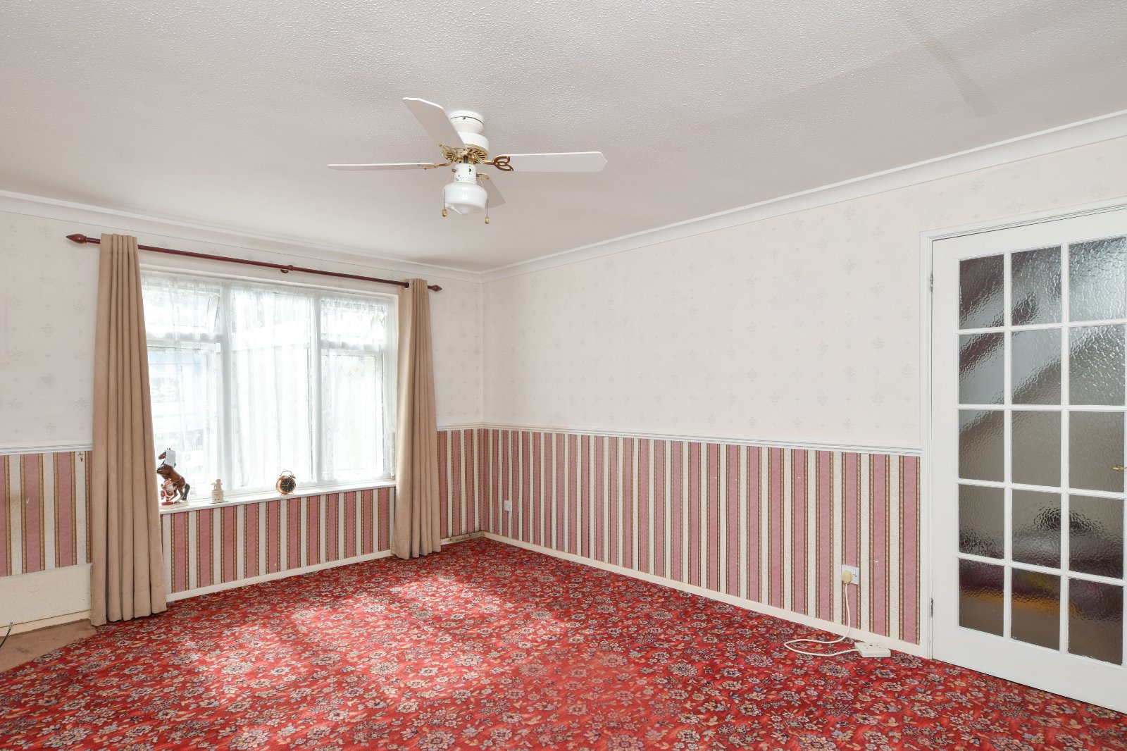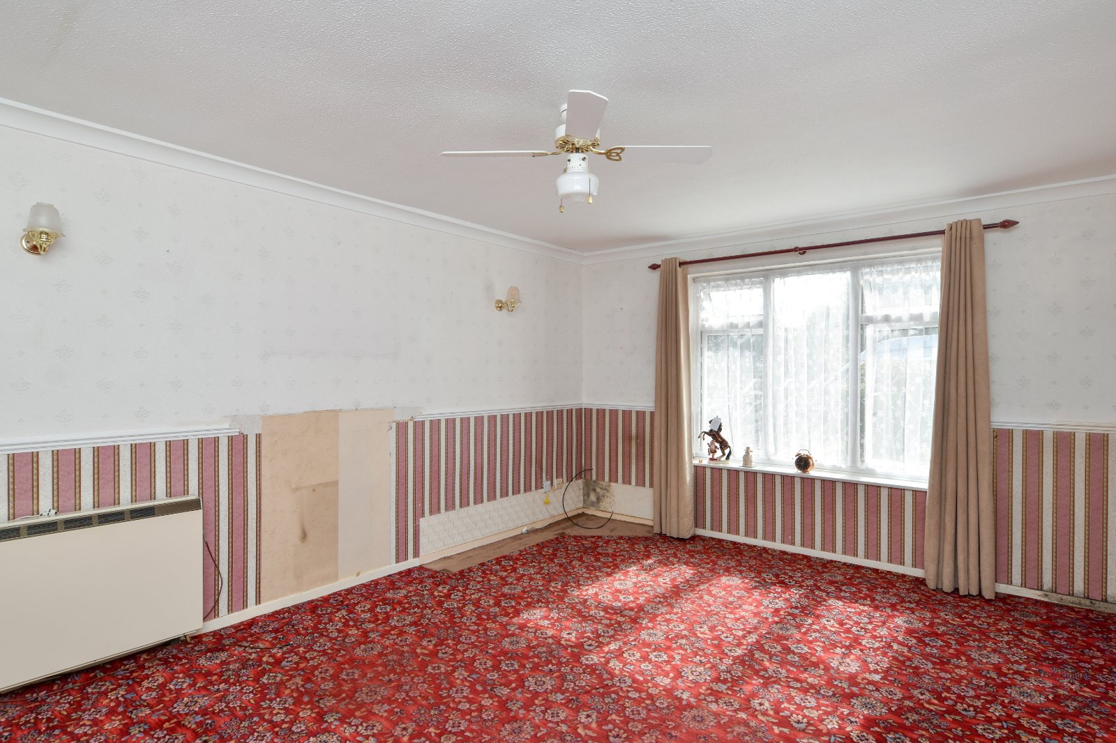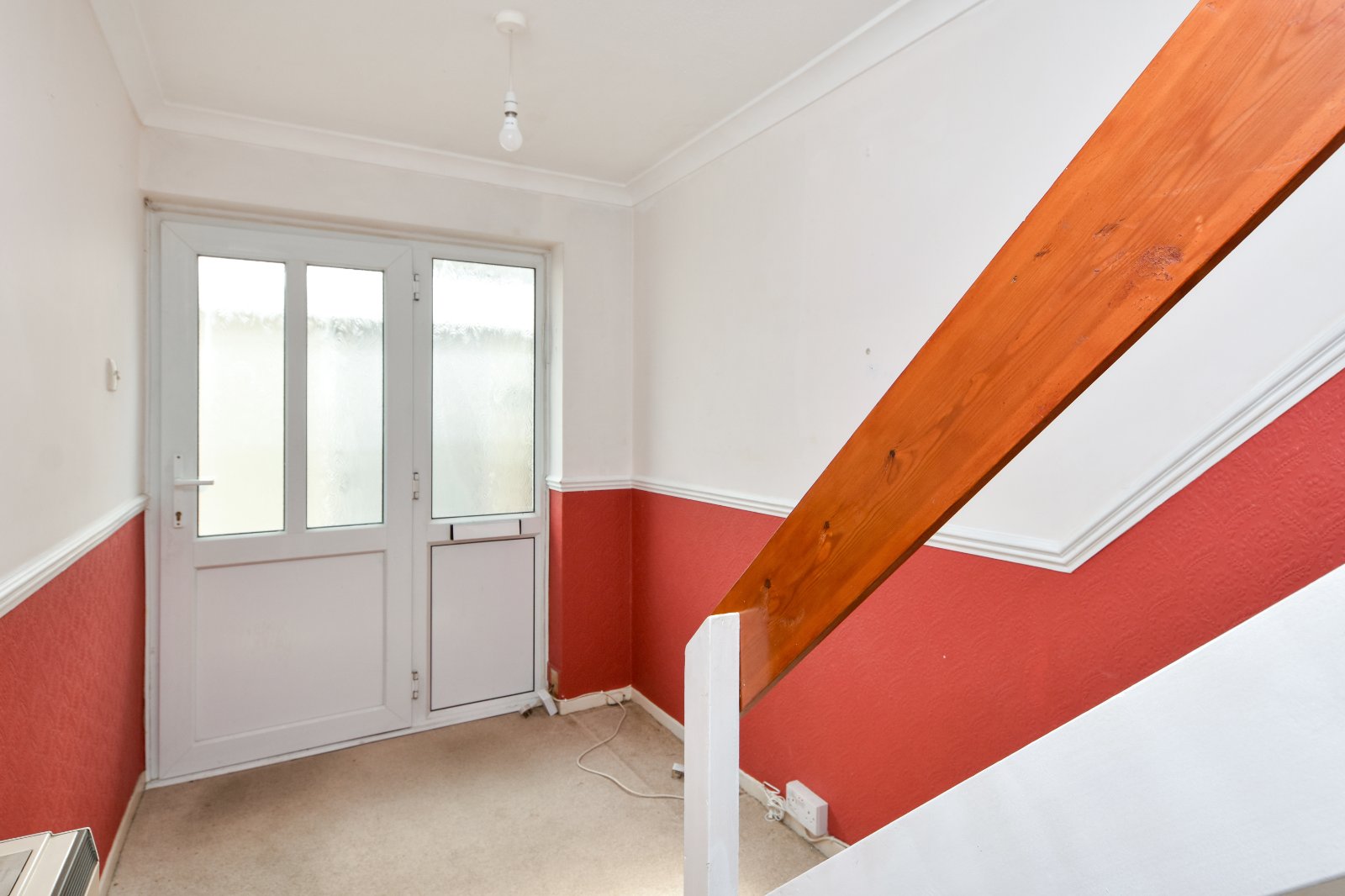 uPVC double glazed window to front aspect. Storage heater. Door to good size 'over-stairs' storage cupboard. Coving to textured ceiling.