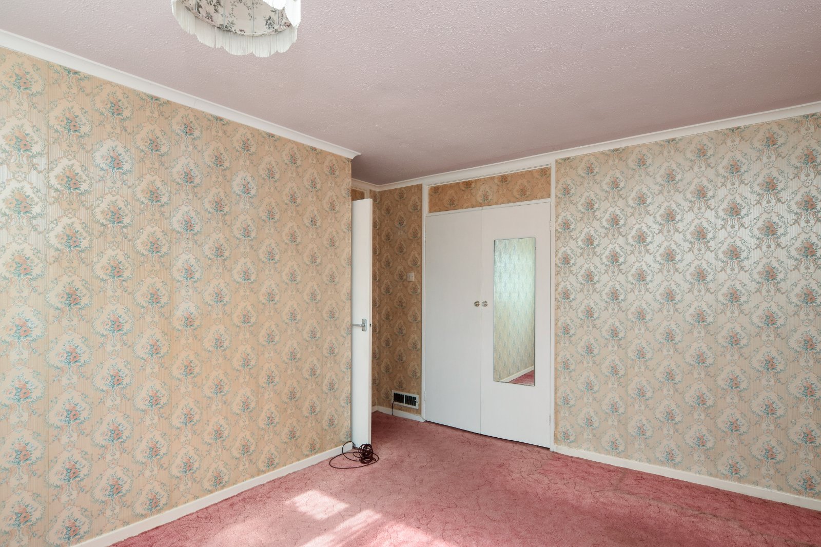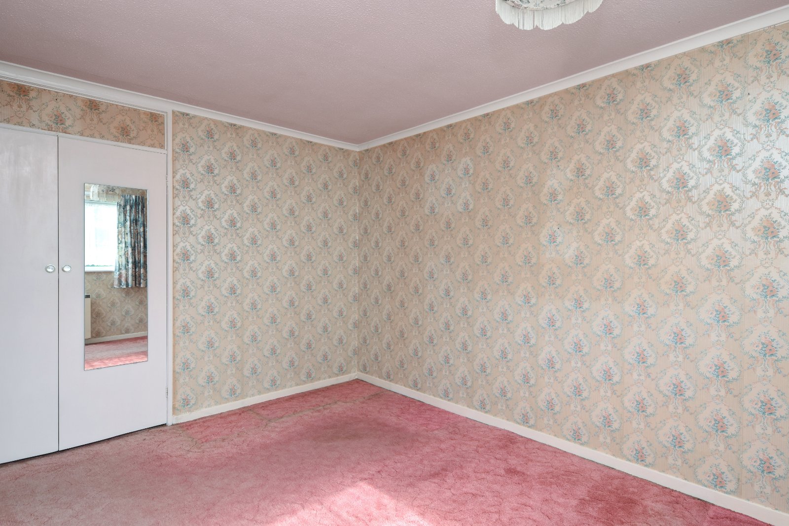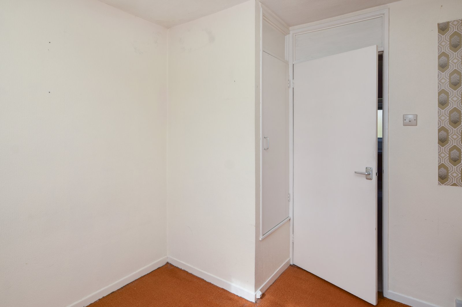 uPVC double glazed window to front aspect. Storage heater. Pair of doors to recessed wardrobe with shelving and hanging space. Coving to textured ceiling.