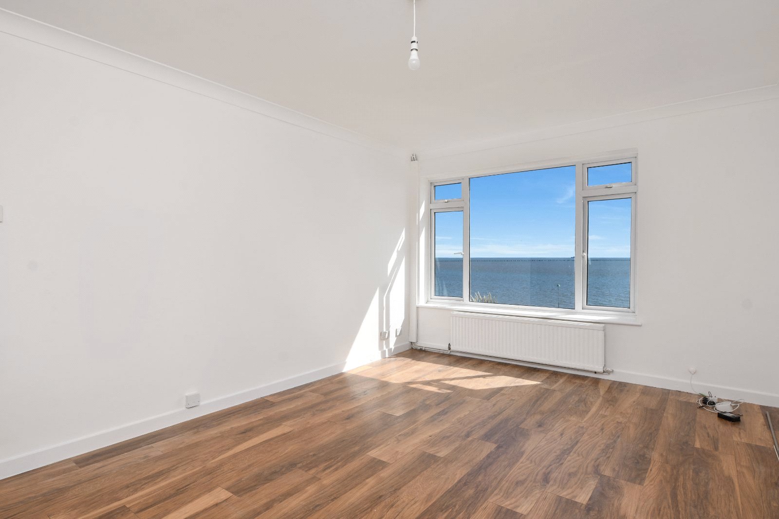uPVC double glazed window to front boasting sensational uninterrupted East Beach and Thames Estuary views. uPVC double glazed door to small 'standing' balcony. Radiator. Laminate wood effect flooring. Coving to textured ceiling.