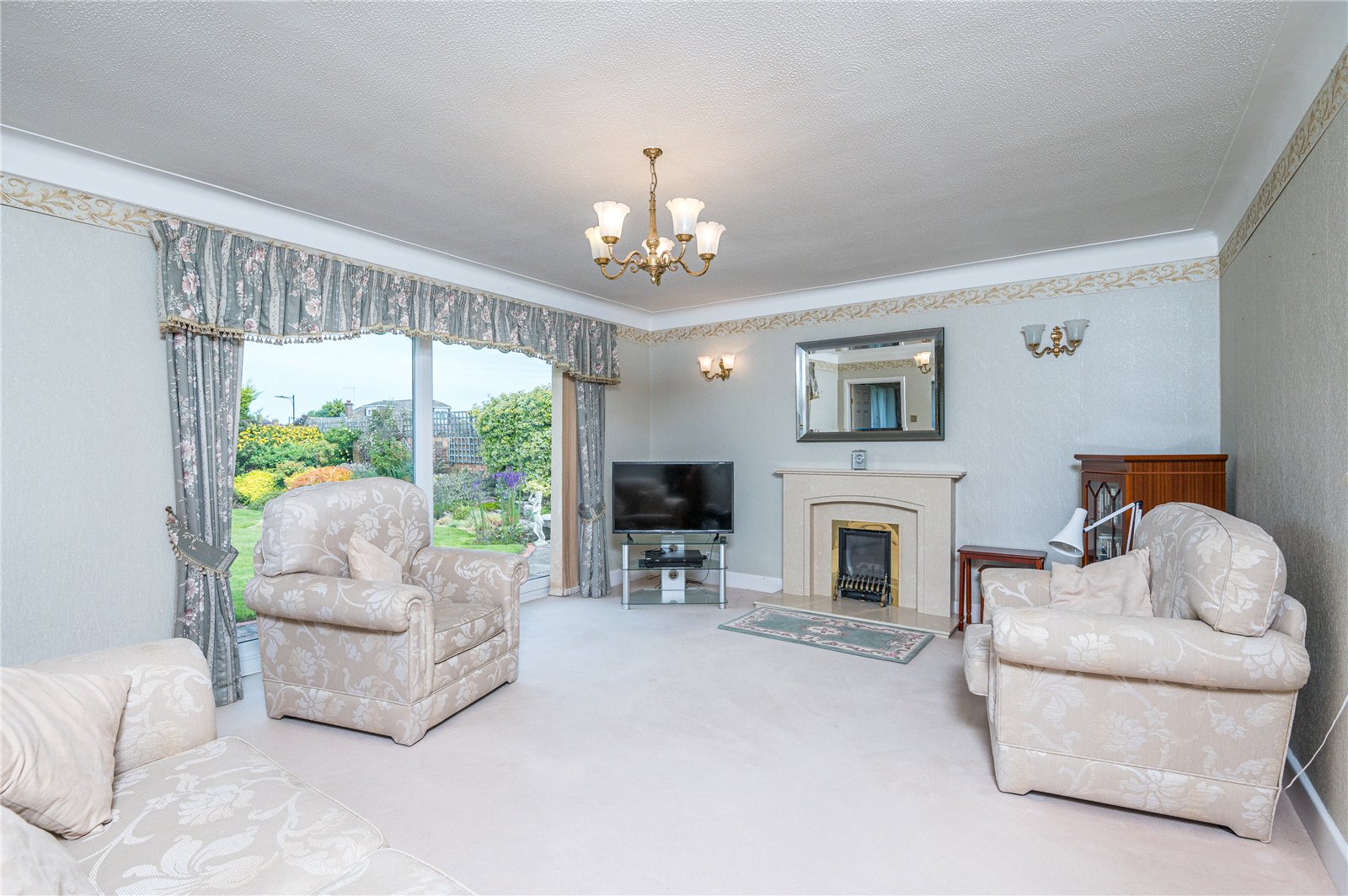 UPVC double glazed sliding patio door to rear leading on to the rear garden, with electric sun awning. Wall mounted radiator. Feature fireplace with stone mantle and hearth, inset gas fire. High level skirting. Wall mounted lighting. Coved ceiling with further drop pendant lighting. Door to side provides access to the: