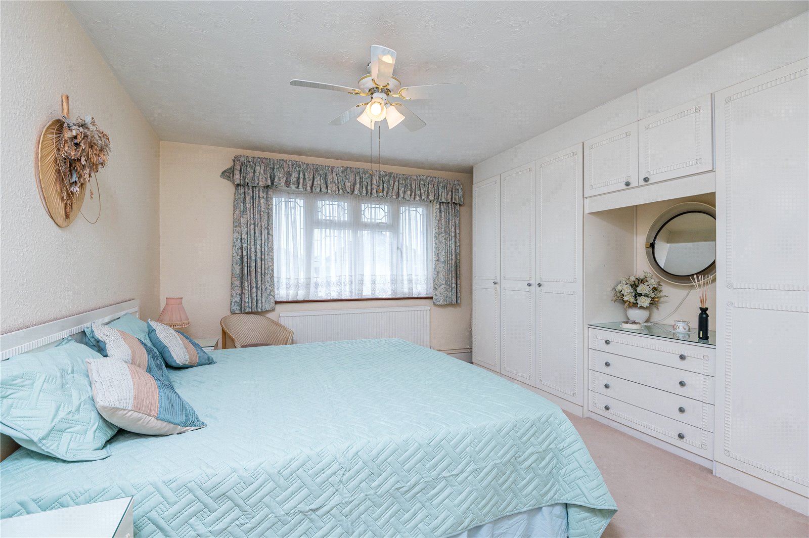 Large UPVC double glazed window to front. Wall mounted radiator. Extensive range of fitted wardrobe units incorporating dressing table with vanity mirror. High level skirting. Ceiling fan incorporating lighting.