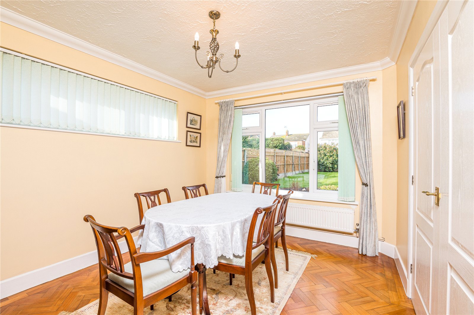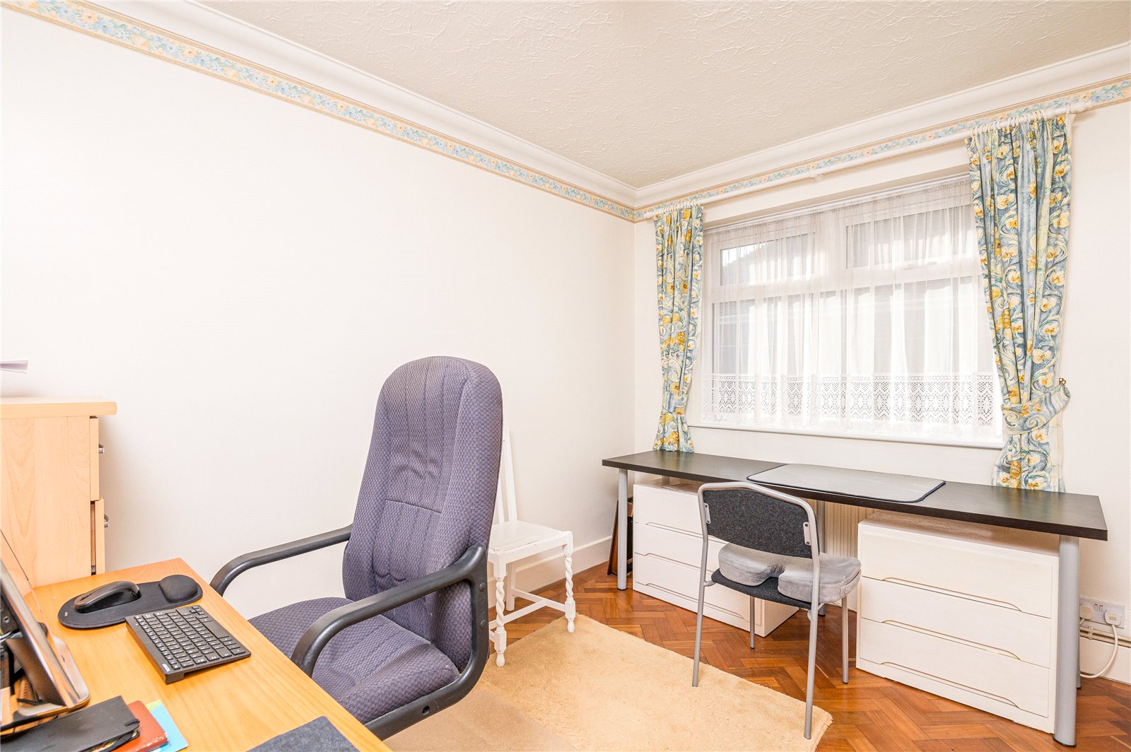 This good size formal dining room enjoys a dual aspect with double glazed windows to side and rear overlooking the garden. Radiator. Herringbone pattern parquet flooring. Coved ceiling. Archway leading to: