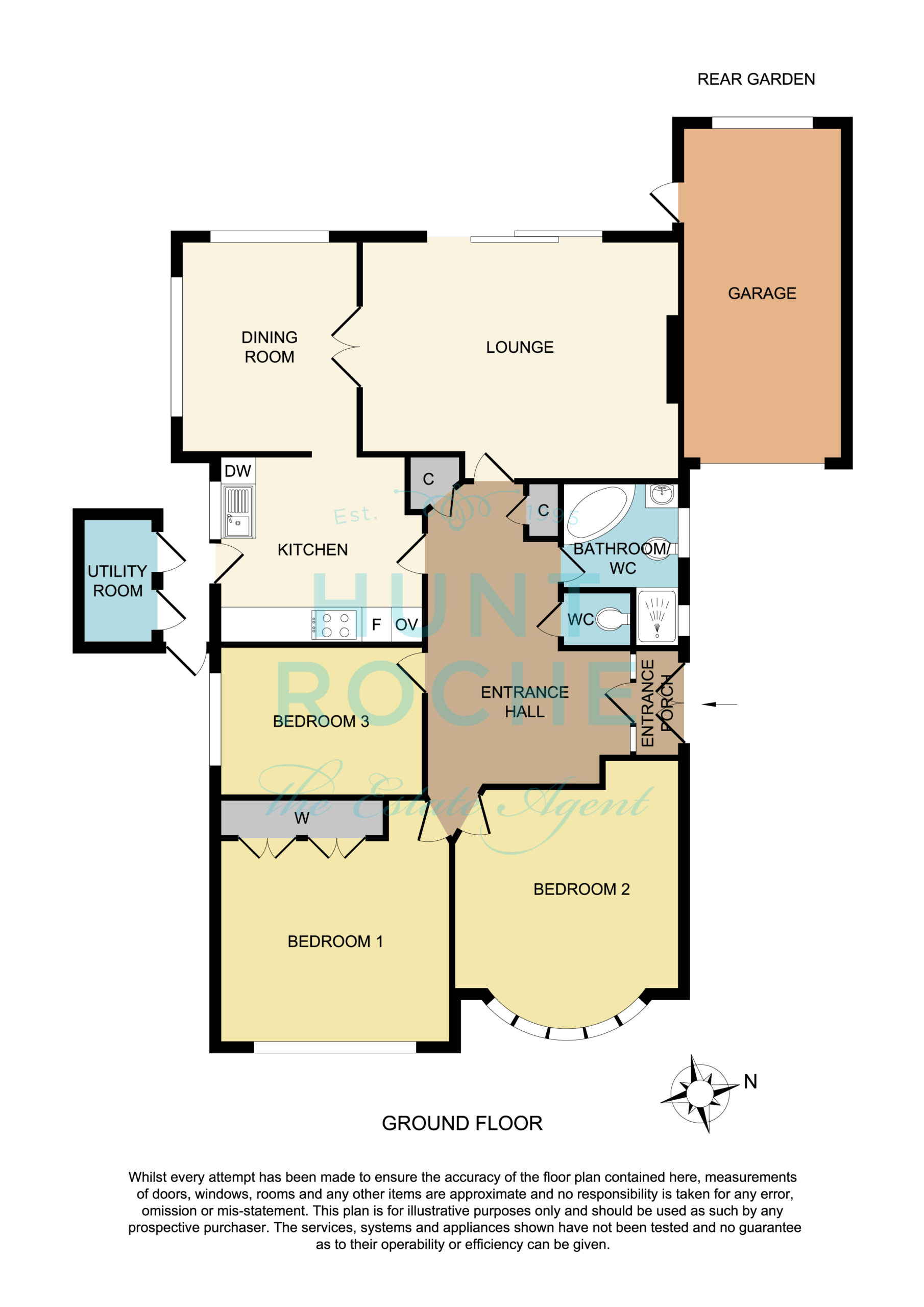 The property benefits from a good size West backing rear garden which is mainly laid to lawn. Extensive paved patio areas with brick edging. Maturing shrubs. Cold water tap. Side entrance. Sun awning.