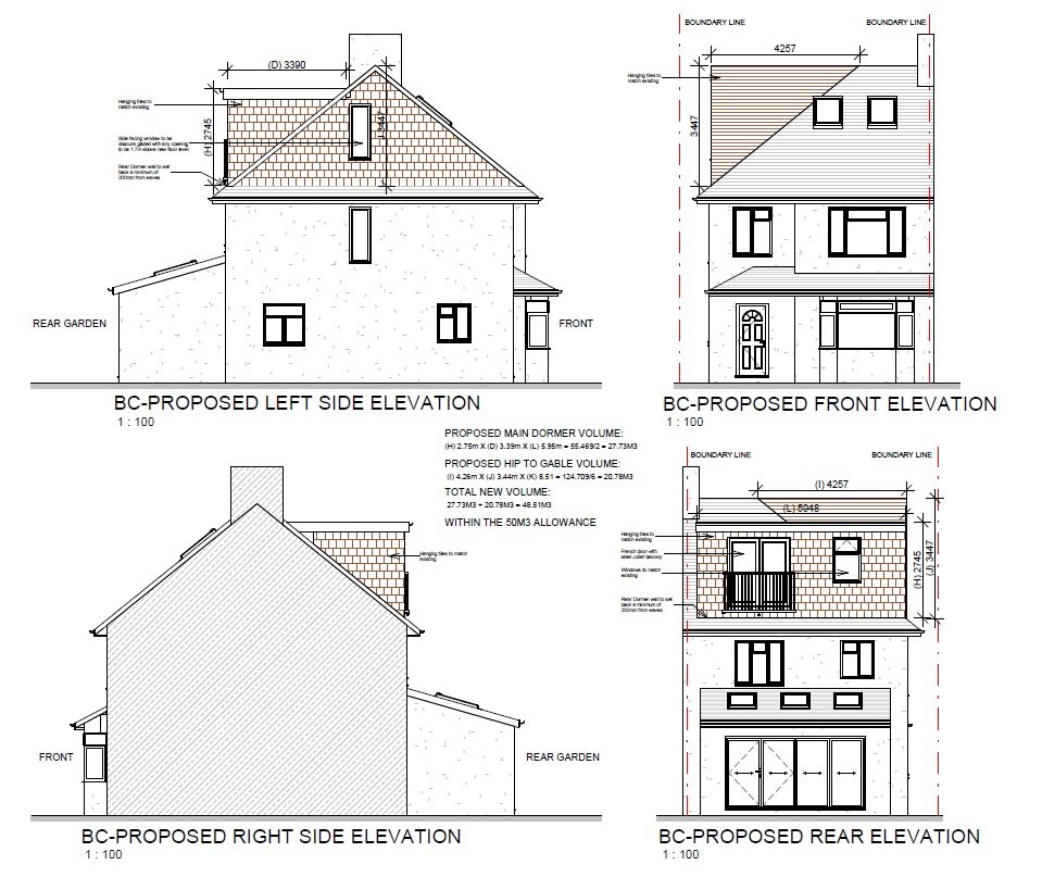 PROPOSAL: HIP TO GABLE REAR ROOF DORMER EXTENSION WITH JULIET BALCONY, TWO ROOFLIGHTS TO THE FRONT