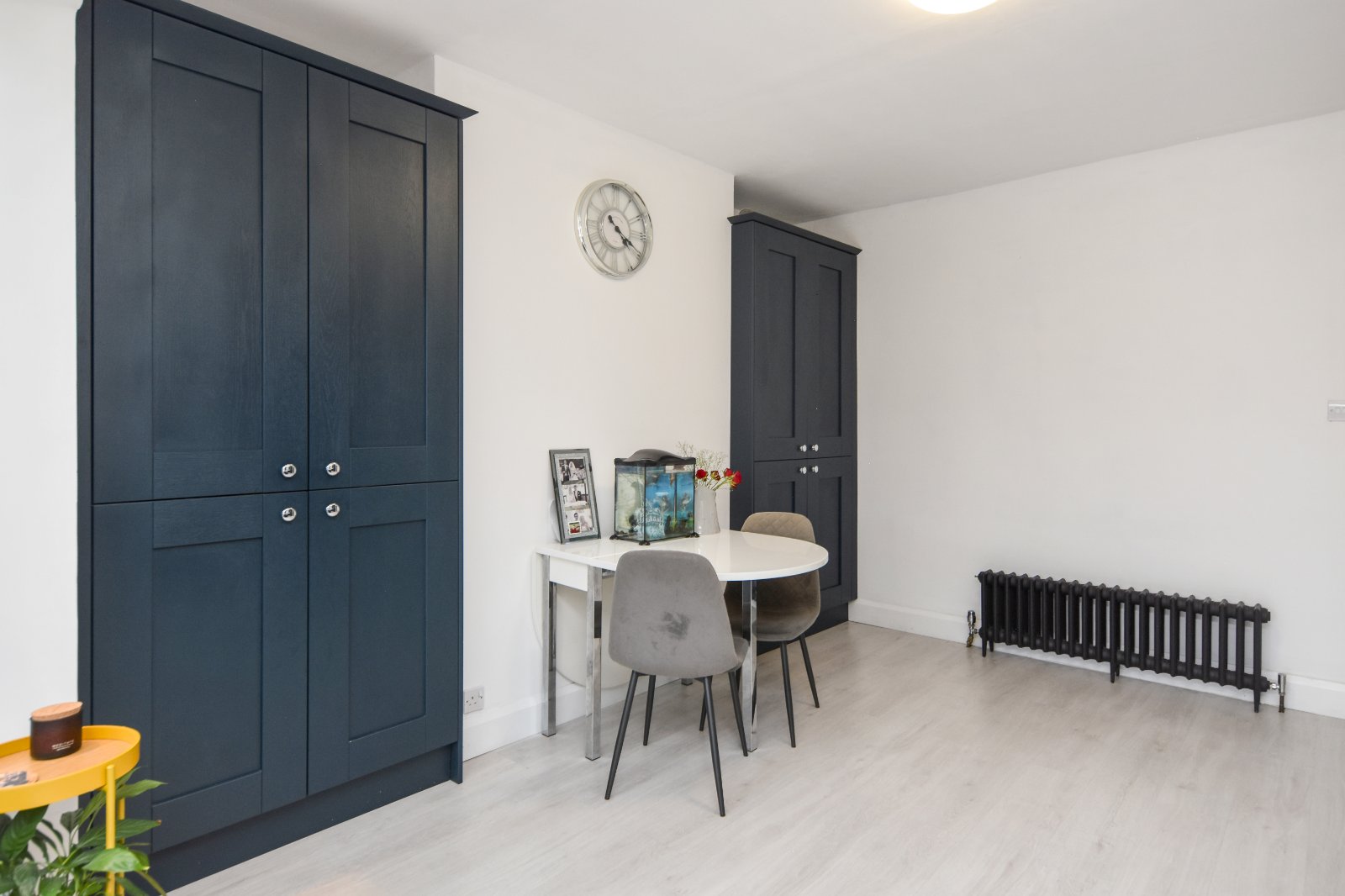 uPVC double window to front aspect fitted with a range of made to measure fitted shutter blinds. Radiator. Smooth plastered ceiling.