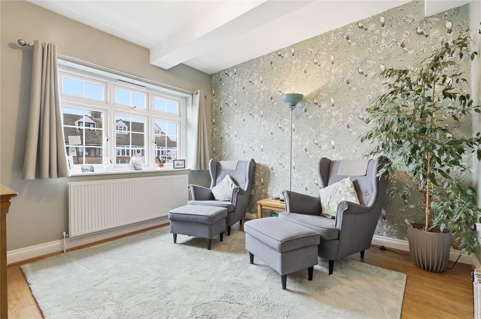 UPVC double glazed window to the front aspect. Coved cornicing with smooth plastered walls and ceiling with ornate ceiling rose. Single banked radiator. Laminate wood effect flooring.