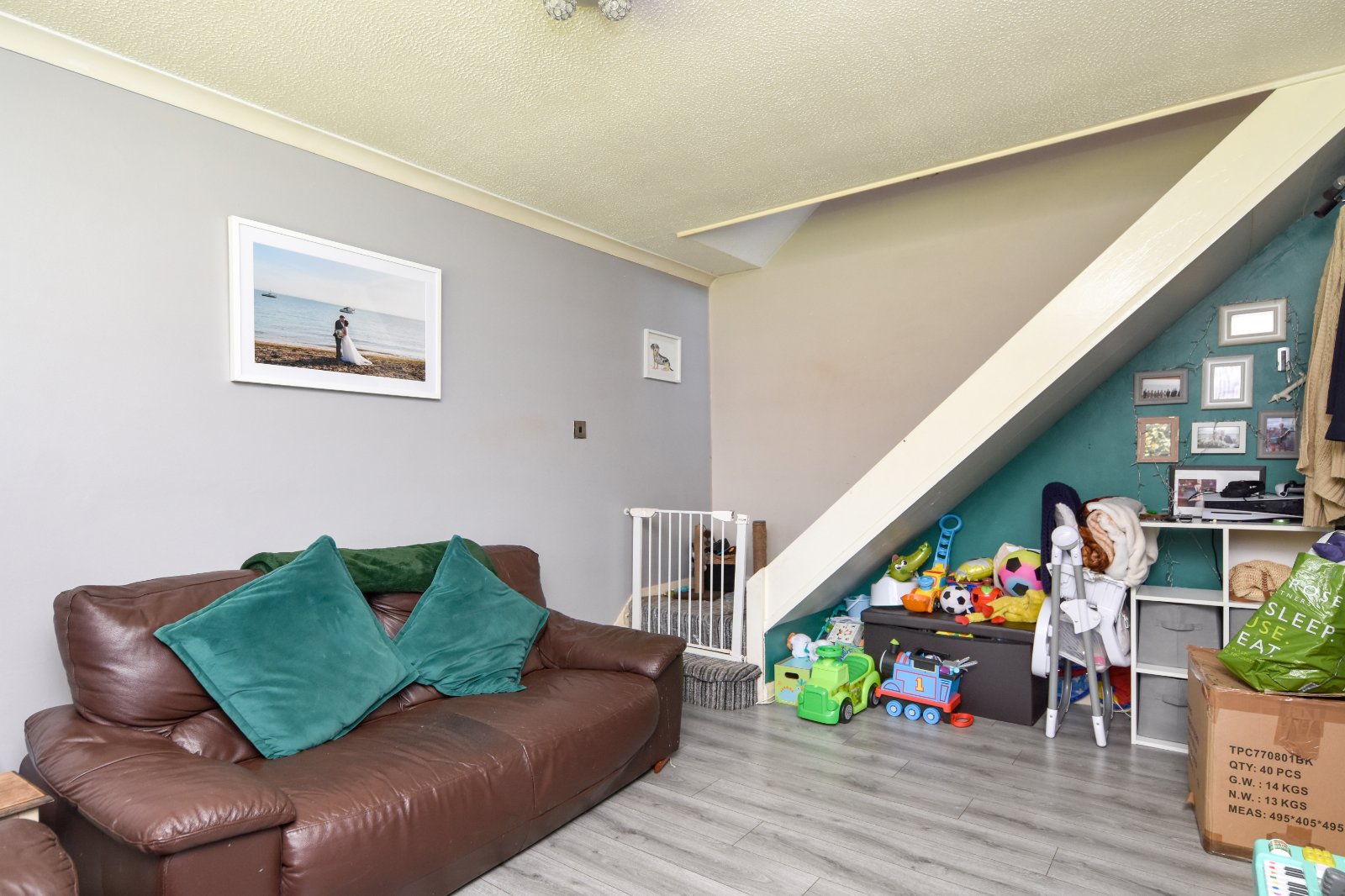 uPVC double glazed window to front aspect. Radiator. Over stairs cupboard. Laminate wood effect flooring. Coving to textured ceiling.