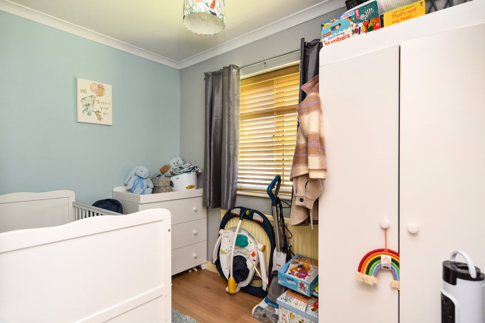 Laminate wood effect flooring. Radiator. Panelled door to storage cupboard. Access to Living Room and Kitchen/Breakfast Room. Textured ceiling.
