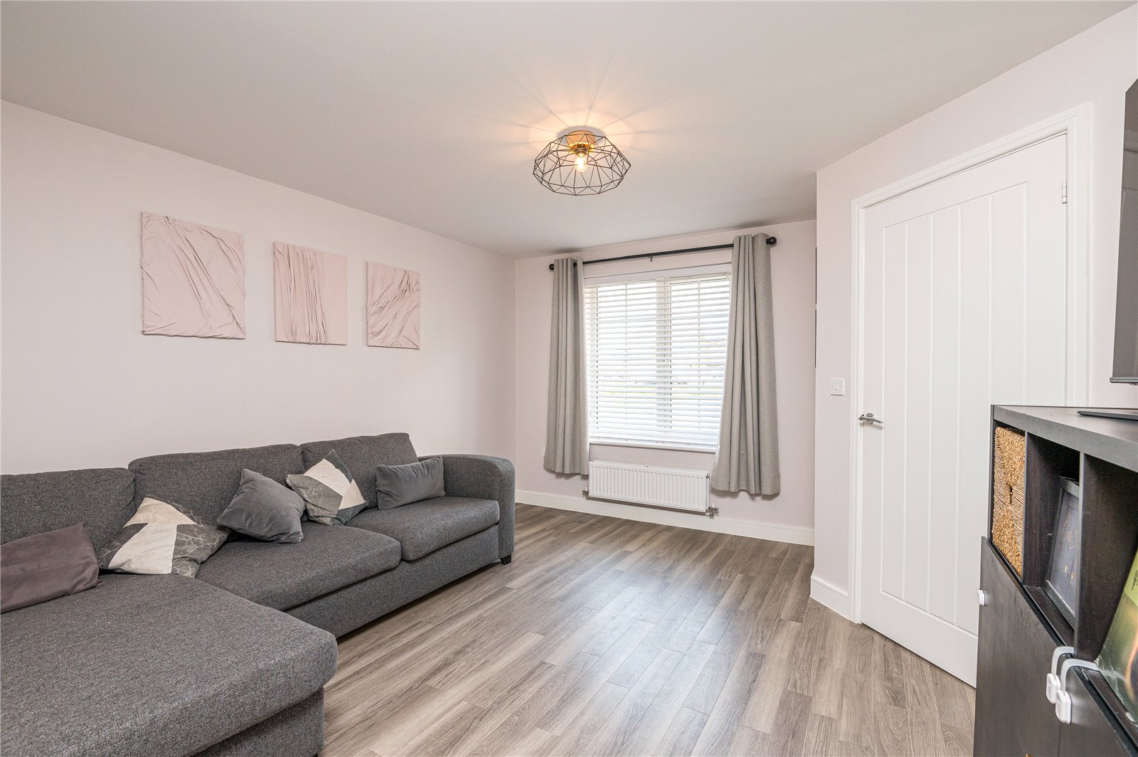 Stairs rising to first floor. Built in storage cupboard housing gas and electric meters. Radiator. Wood effect Amtico flooring. High level skirting. Smooth plastered ceiling.