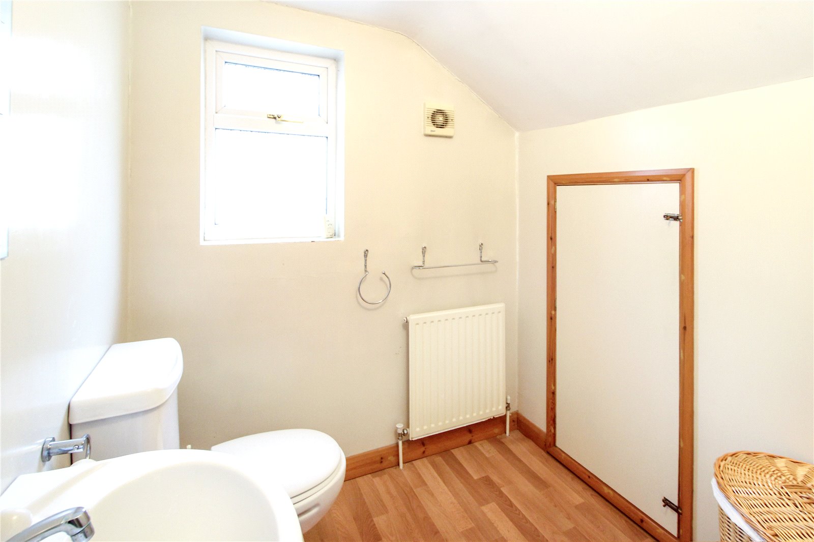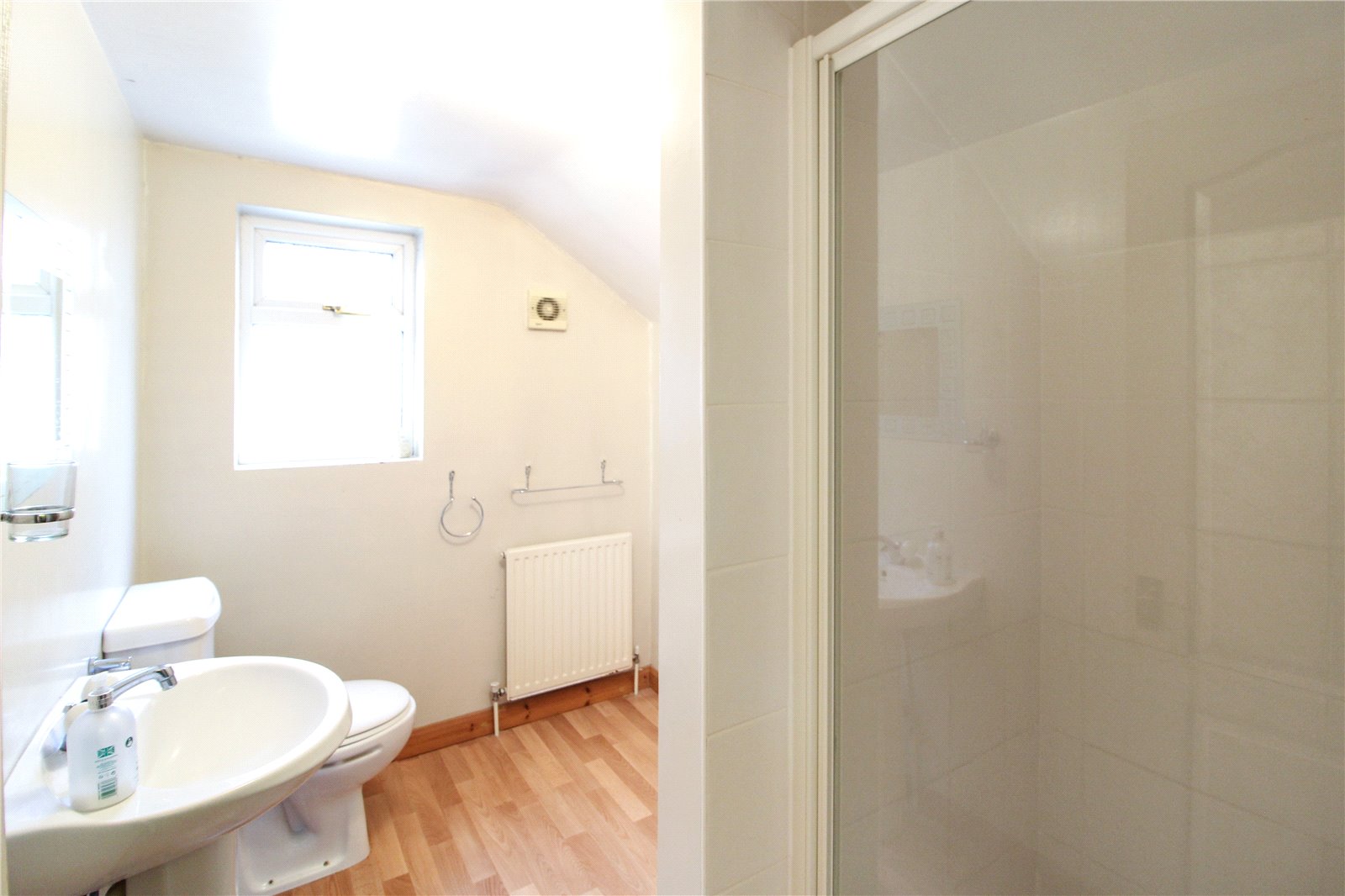 Laminate flooring, shower, sink, WC, obscure double glazed window to side aspect, radiator, smooth ceiling, ceiling light.