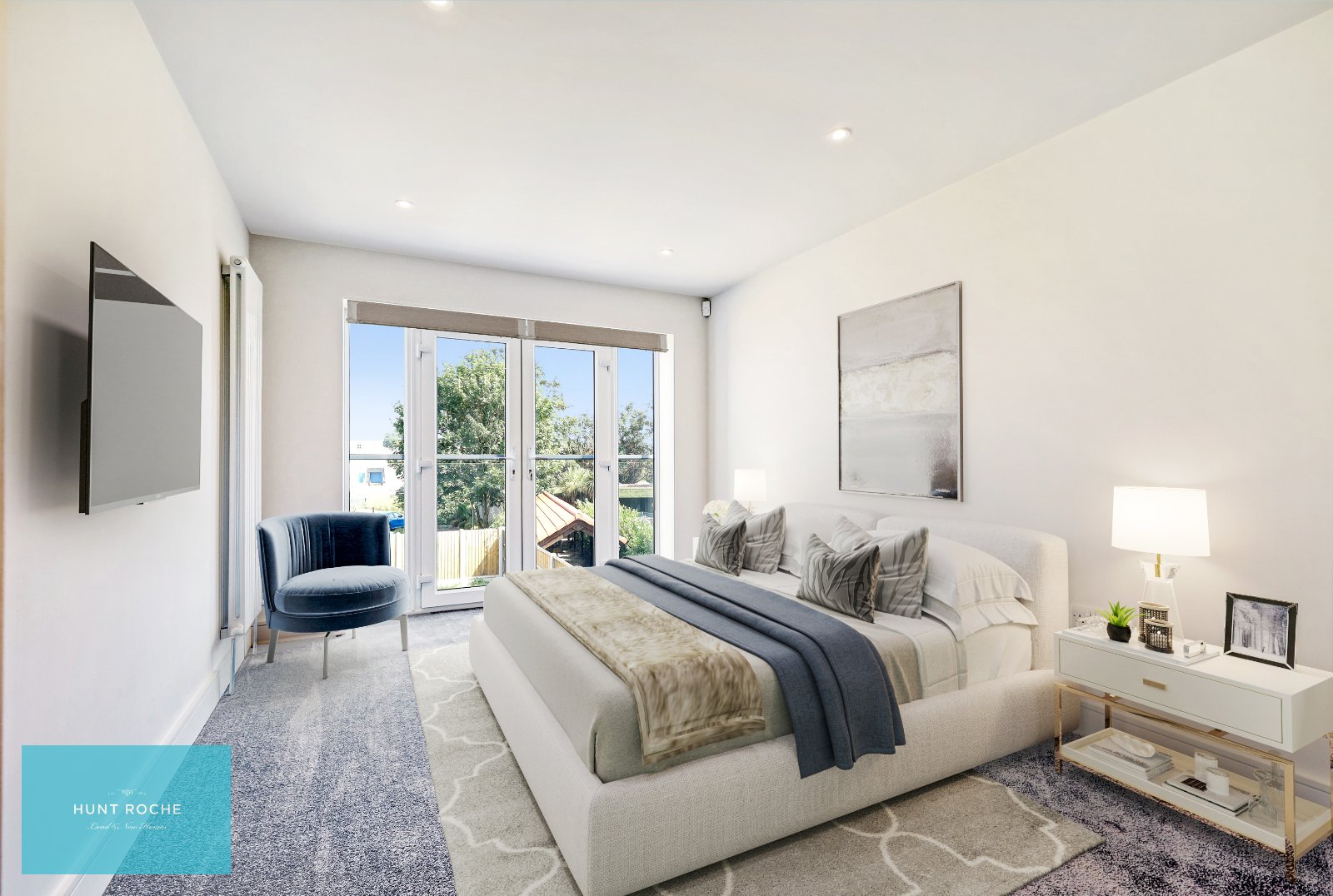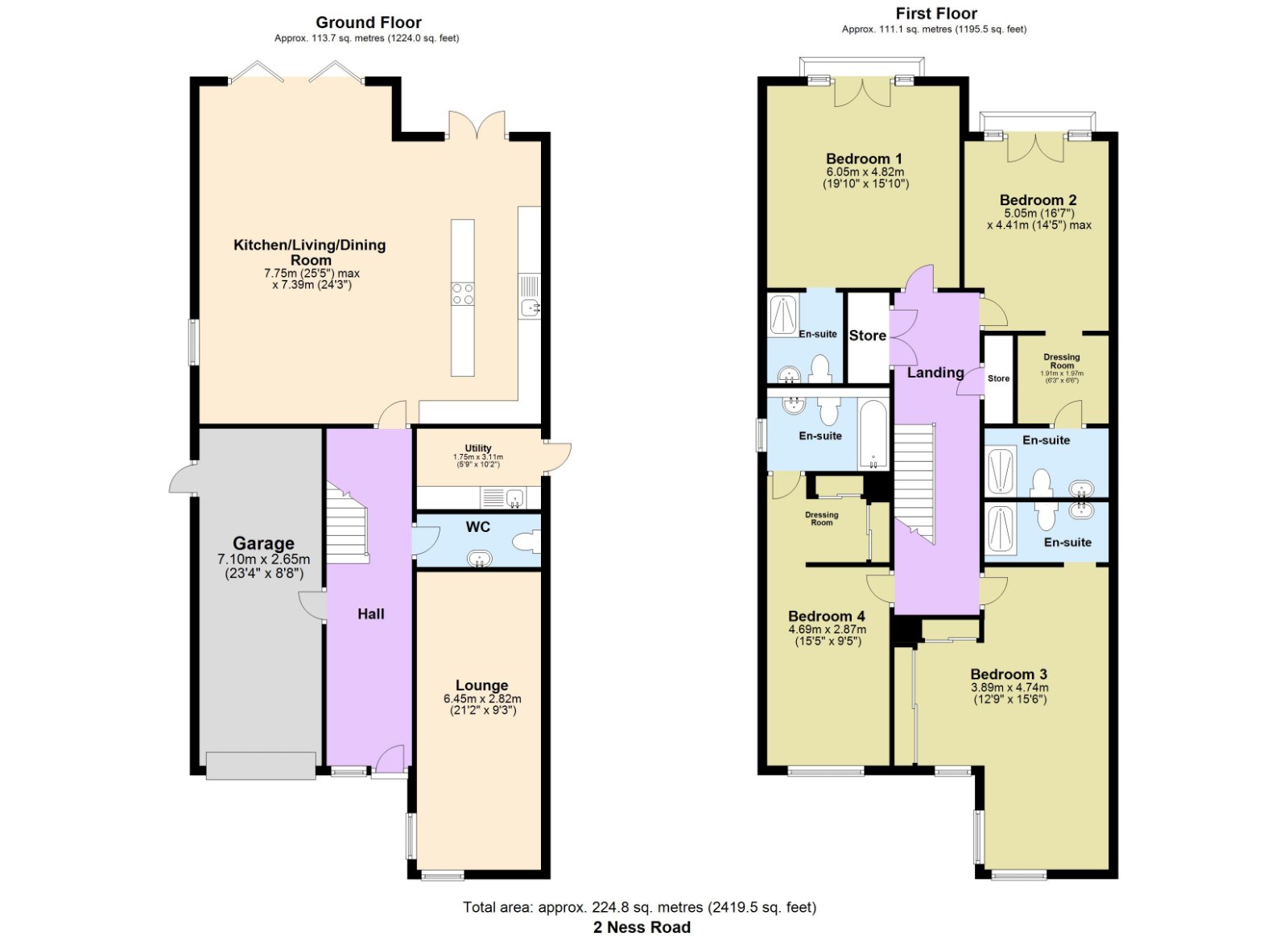 The first floor features a generous landing with a good-sized cupboard and an additional triple-width walk-in cupboard, both with sensor lighting. The four bedrooms are bright and airy, with large windows and high-spec ensuites.