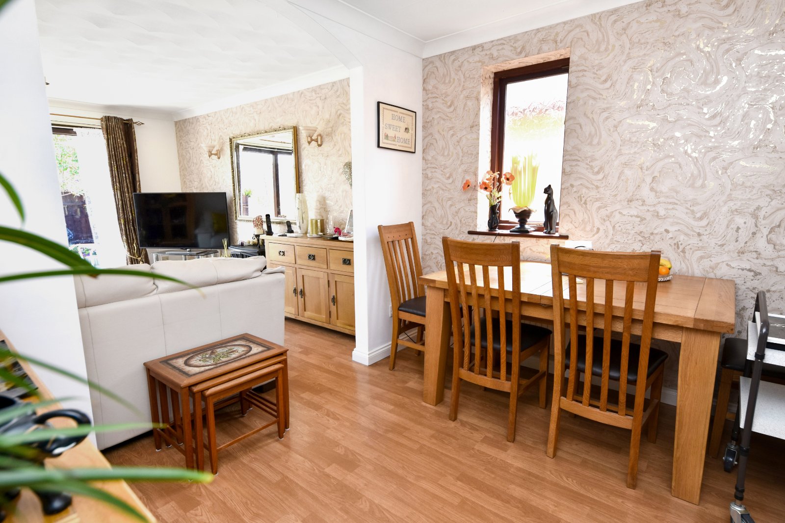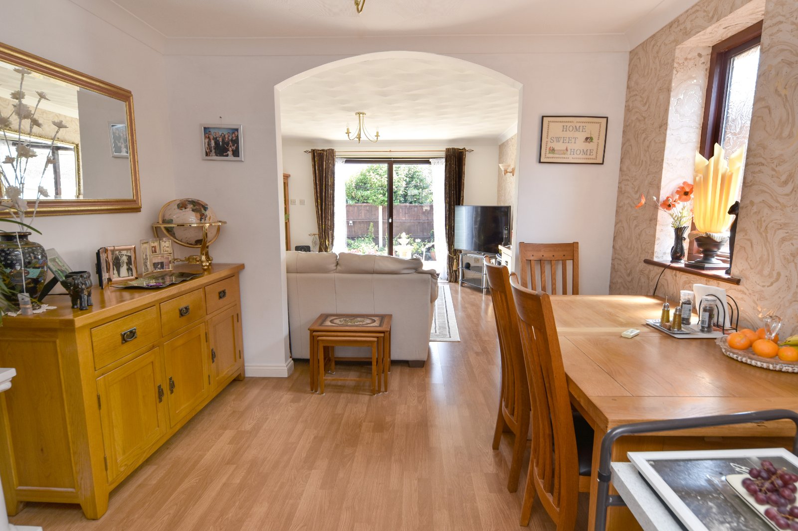 uPVC double glazed sliding patio door to the rear aspect opening onto the Garden. Wood effect laminated flooring. Radiator. Coving to textured ceiling.
