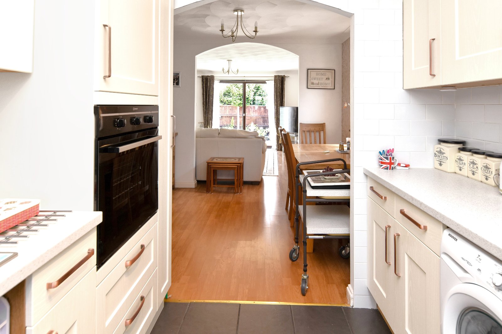 uPVC obscured double glazed window to side aspect. Wood effect laminated flooring. Radiator. Coving to textured ceiling. Open archway through to Living Room and Kitchen;
