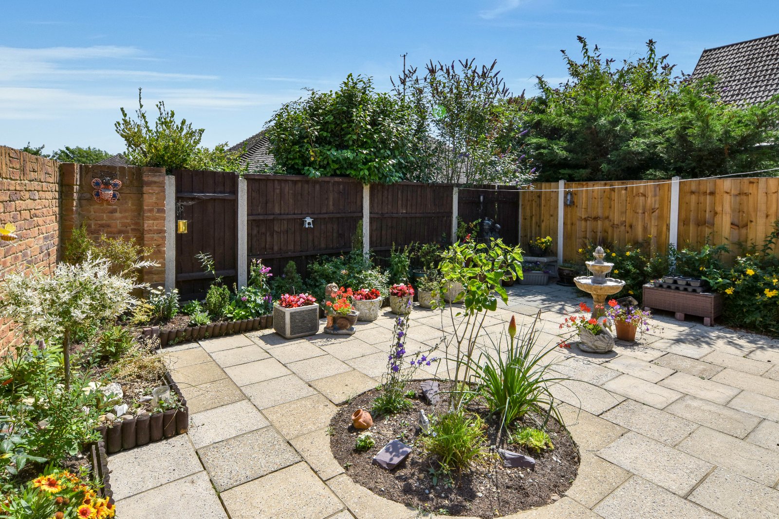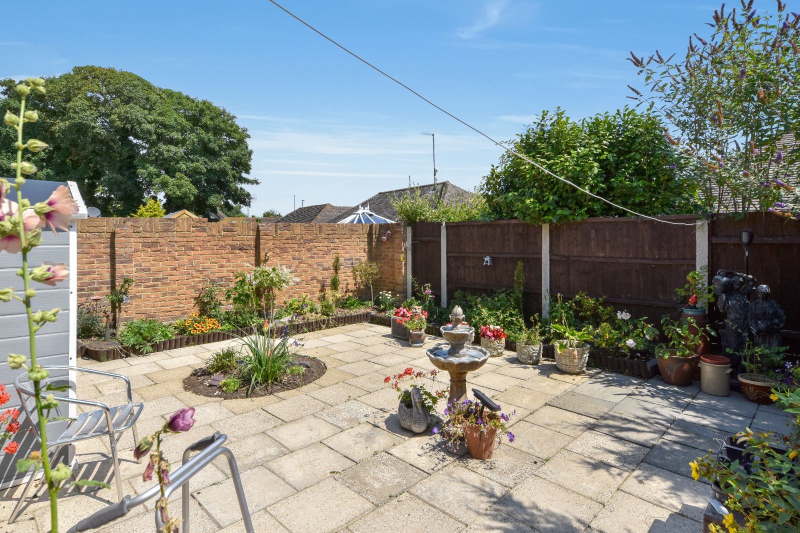 The Garden is accessed via the Living Room and commences with a paved patio and well stocked borders. External water tap. Gated side access leading to the front of the property.