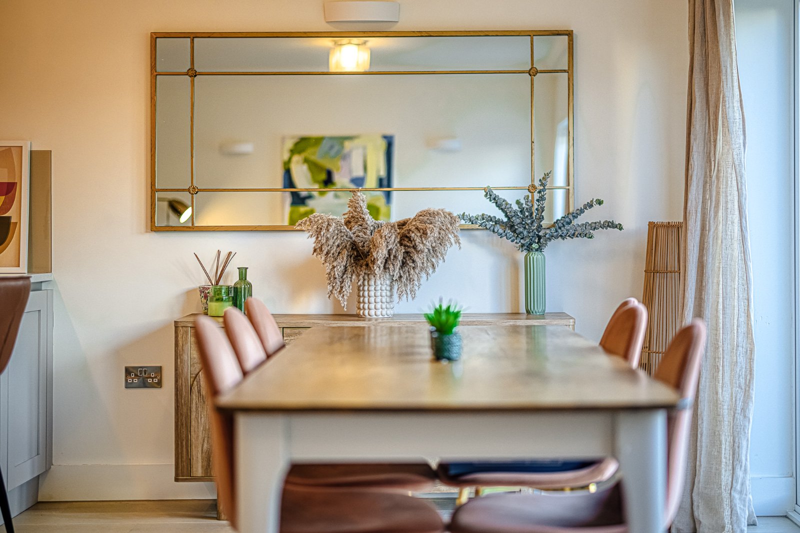 Internally, the home opens into a welcoming reception hallway with access to a contemporary ground floor guest cloakroom/WC, generous storage and the integral garage. To the front of the property sits a stylish dual-aspect lounge, ideal as either a formal reception room or a relaxed family space.