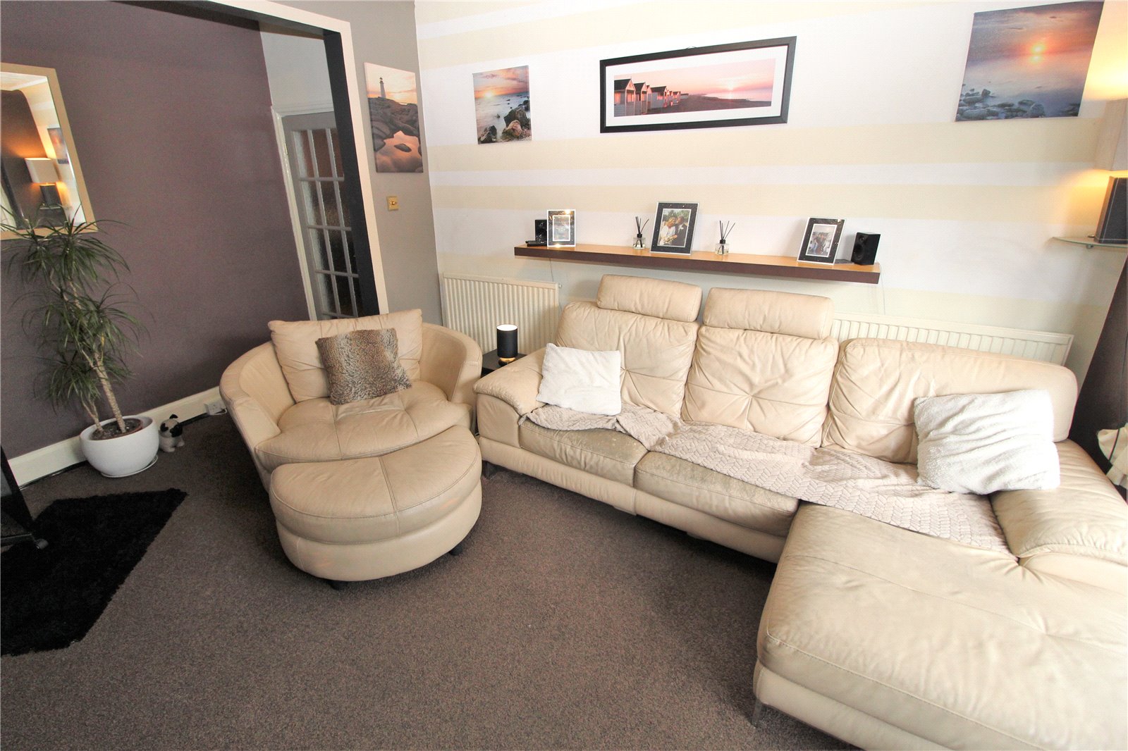 Door to side and further door overlooking and leading to the rear garden, radiator, built in storage cupboard providing space for both a washing machine and tumble dryer, coved cornice to ceiling edge.