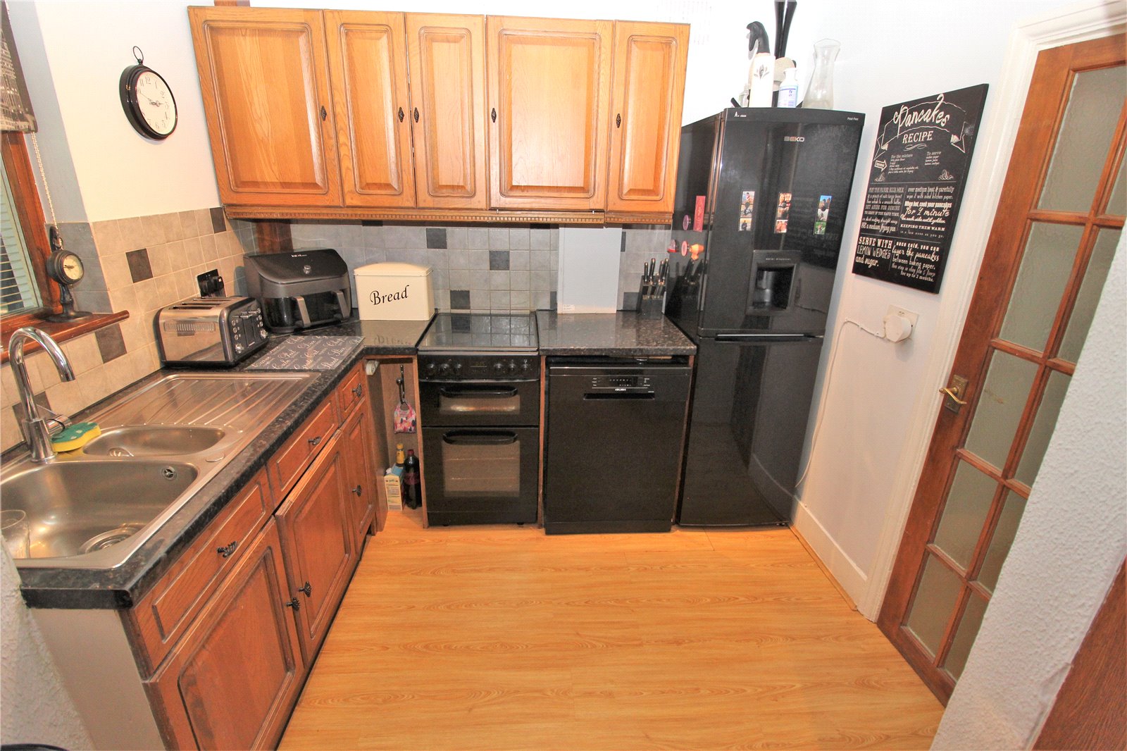 Double glazed window to rear, fitted with an impressive range of eye and base level units with ample working surfaces over comprising a stainless steel sink unit with mixer tap, space for cooker and further domestic appliances, partly tiled walls in complimentary ceramics, wood effect flooring, doors to:
