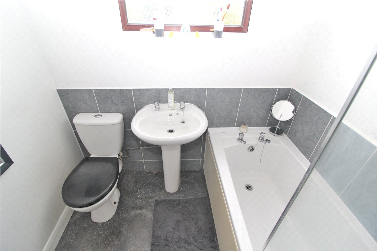 Obscure glazed window to side, low level W.C