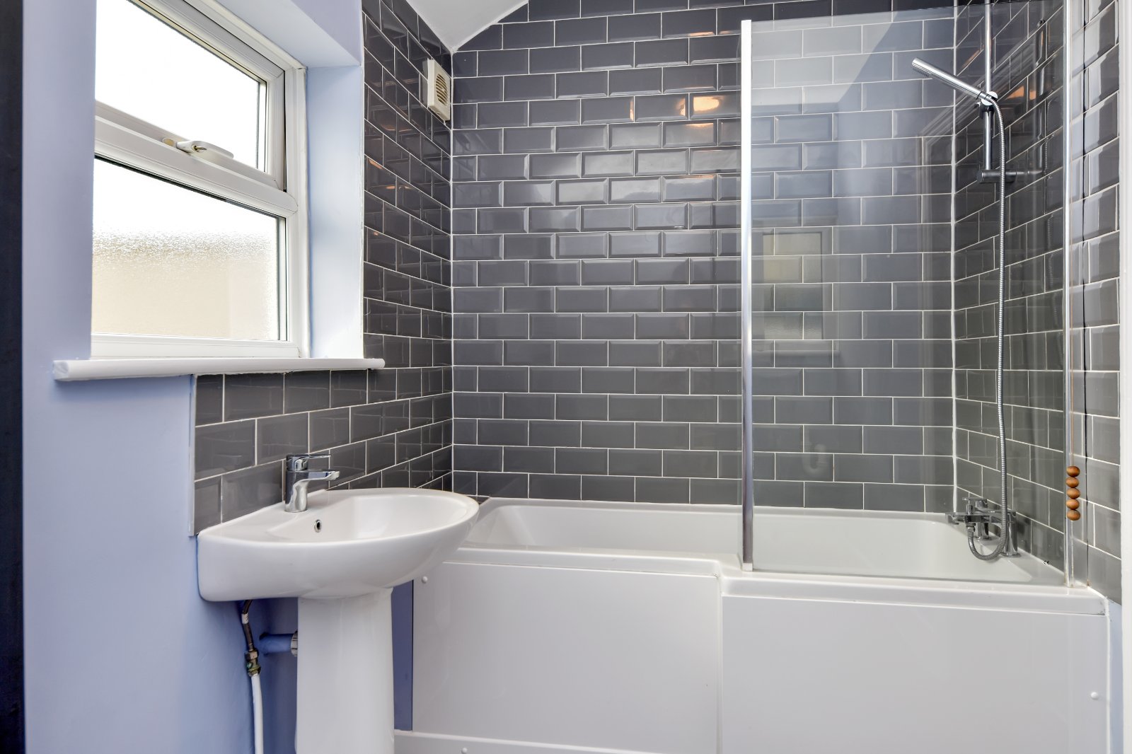 Pair of obscure uPVC double glazed windows to rear aspect with additional obscure uPVC double glazed window to side aspect. The Bathroom has been refitted with a modern white suite comprising panelled enclosed 'shower bath' with fitted glass screen, mixer tap with shower attachment, pedestal wash hand basin and low level dual flush WC. Finished with full-height grey tiled splashbacks to the bath/shower area. Wall mounted extractor fan. Vertical wall-mounted radiator. This room also benefits from plumbing connections, making it suitable for use as a utility space if desired. Vinyl flooring. Smooth plastered ceiling.