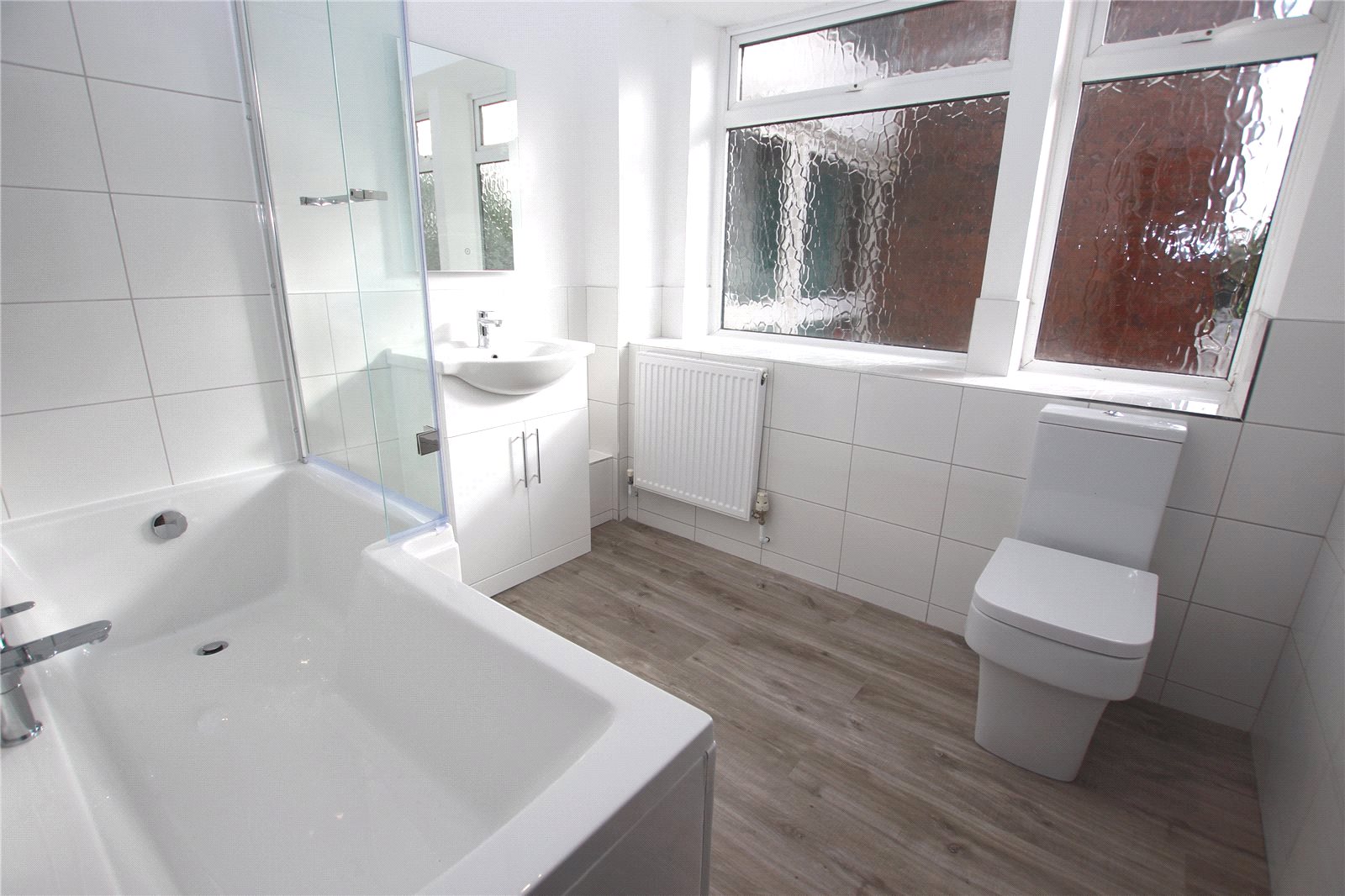 With Shower over the Bath and fitted shower screen.