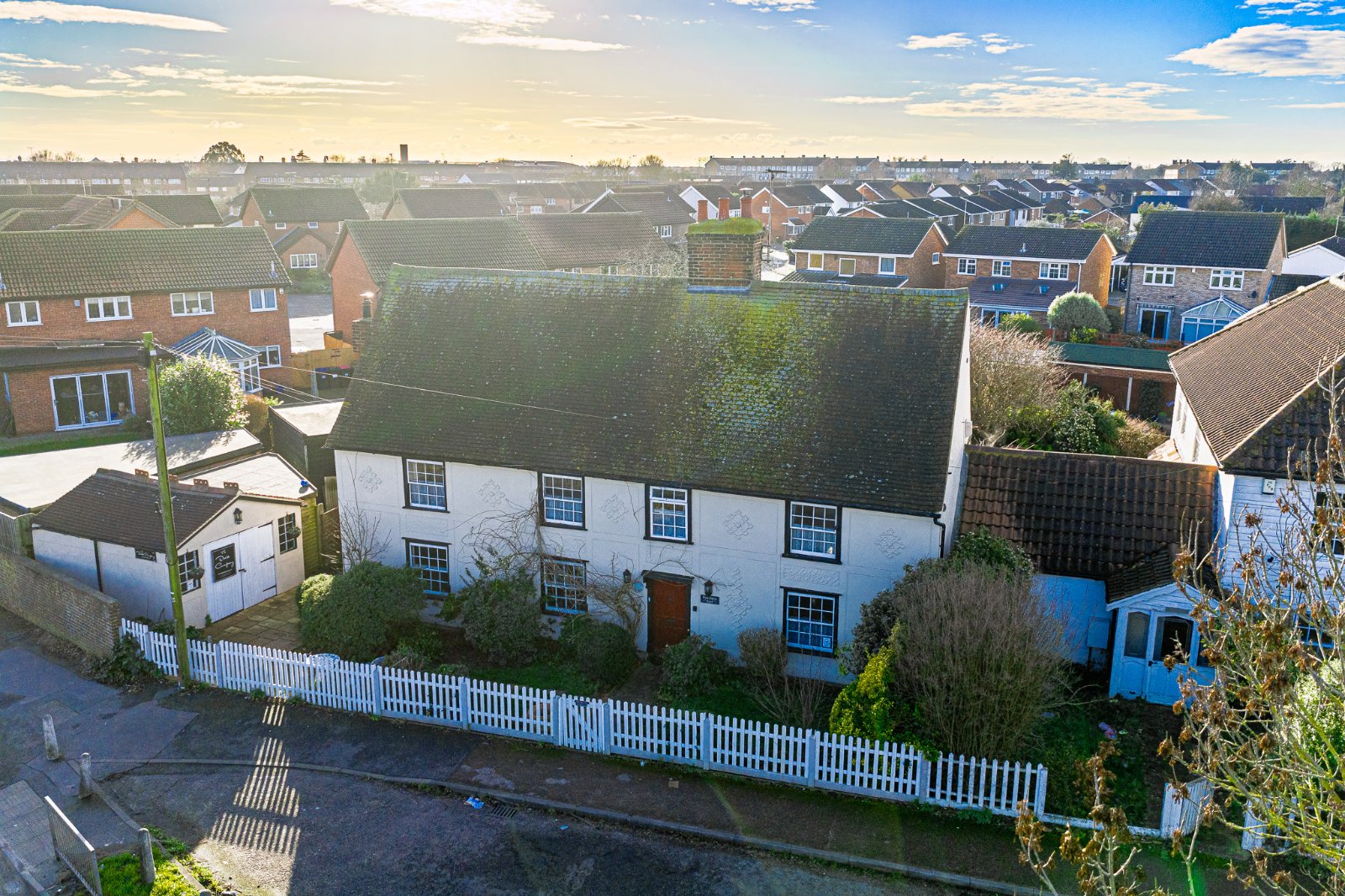 A Grade II listed former Essex farmhouse with historical records pre-dating the property to the early 18th century, forming part of the original North Shoebury Hall Farm. This rare pargetted farmhouse is one of the few remaining historic dwellings within Shoeburyness and retains a wealth of original architectural features including exposed timbers, inglenook fireplaces, sash windows and latch doors throughout.