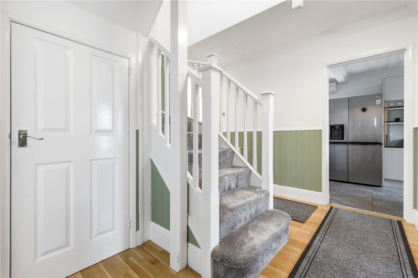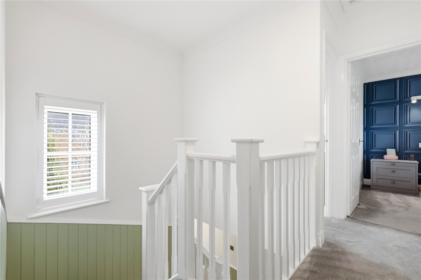 Oak flooring, lipped skirting, radiator. Feature panelling to dado height. Access to understairs storage cupboard. Turned staircase to part-galleried landing. Coved cornice to ceiling. Panelled doors lead off to principal ground floor rooms: