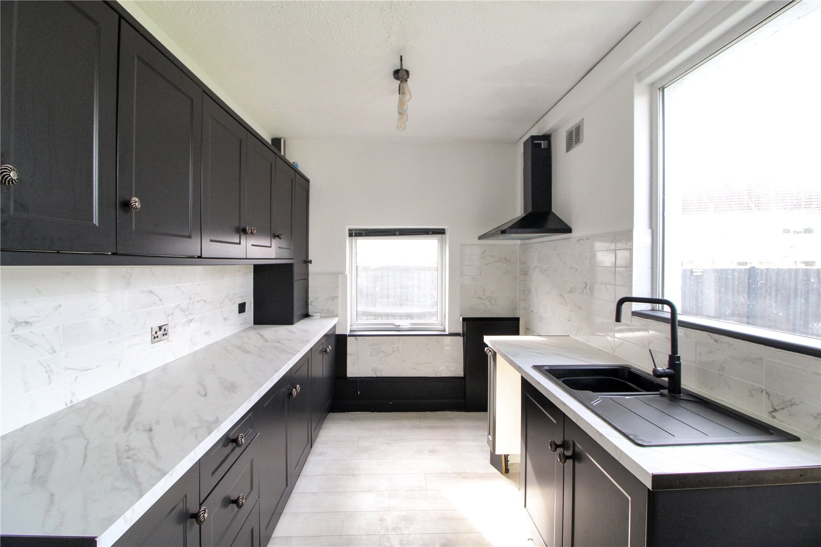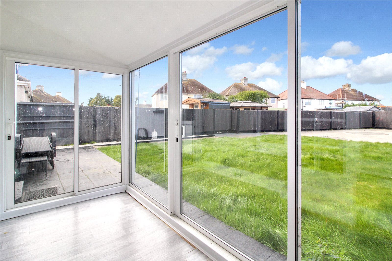 uPVC double glazed sliding door to rear with uPVC double glazed windows adjacent and to side. Laminate wood-effect flooring. Ceiling light.