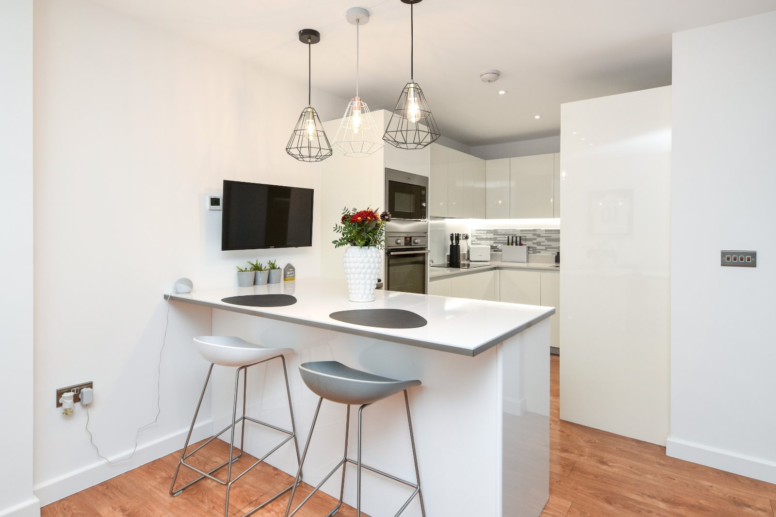 The unique homes offers a stunning Ground Floor which seamlessly integrates an open-plan layout, featuring a sublime fully equipped Kitchen and Dining Area at the rear. A charming Breakfast Bar seating area extends from beautiful kitchen.