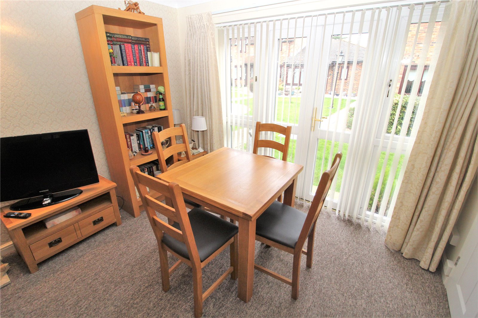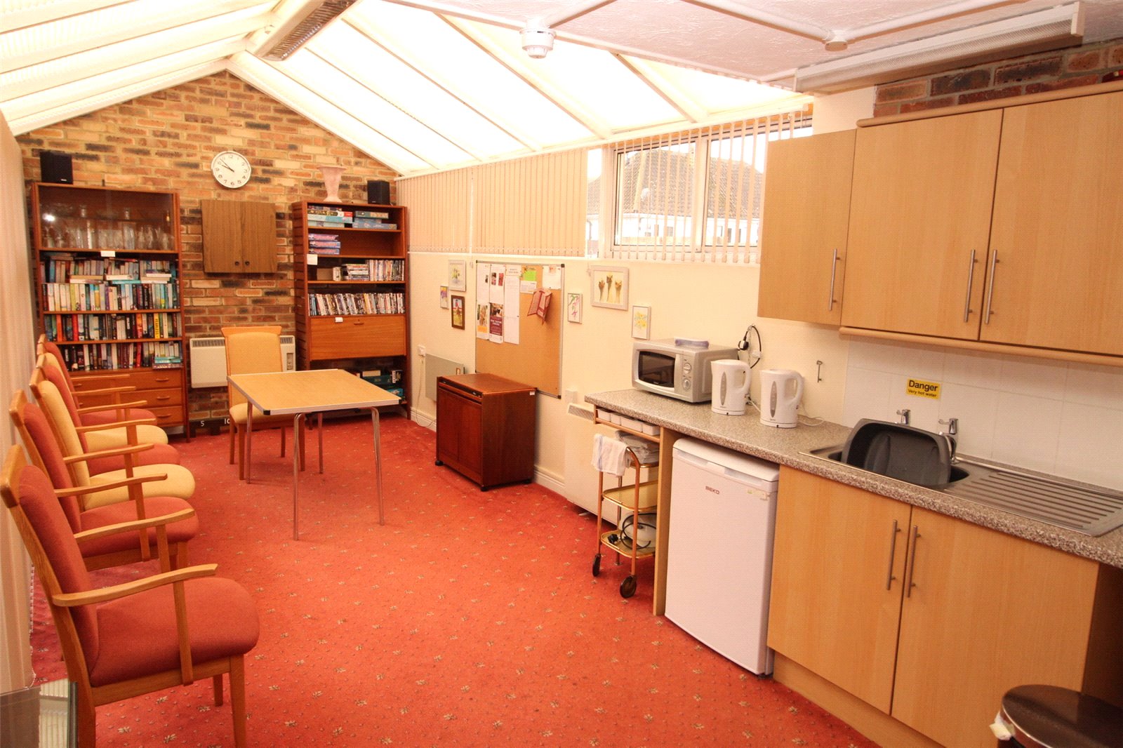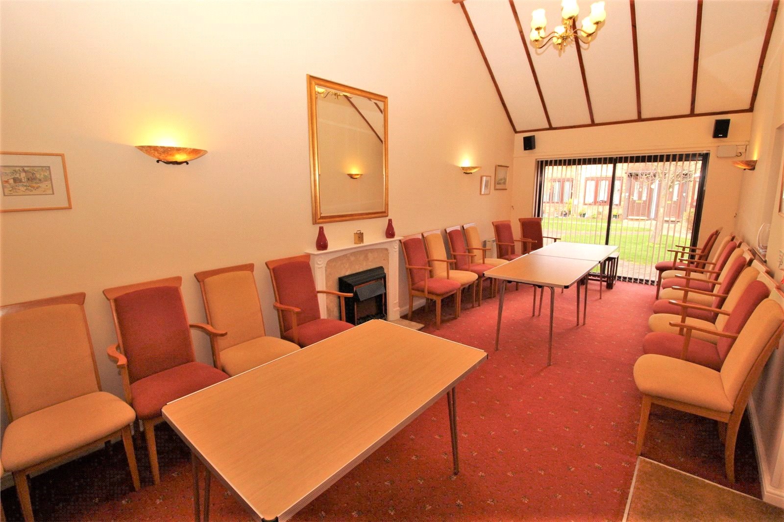 Upvc double glazed french doors to the rear aspect with windows adjacent give access to the communal garden area. Coved cornicing with textured ceiling. Wall mounted electric heater. Feature fireplace with inset electric pebble effect fire. Television aerial point. Internet point. Emergency pull cord/intercom.