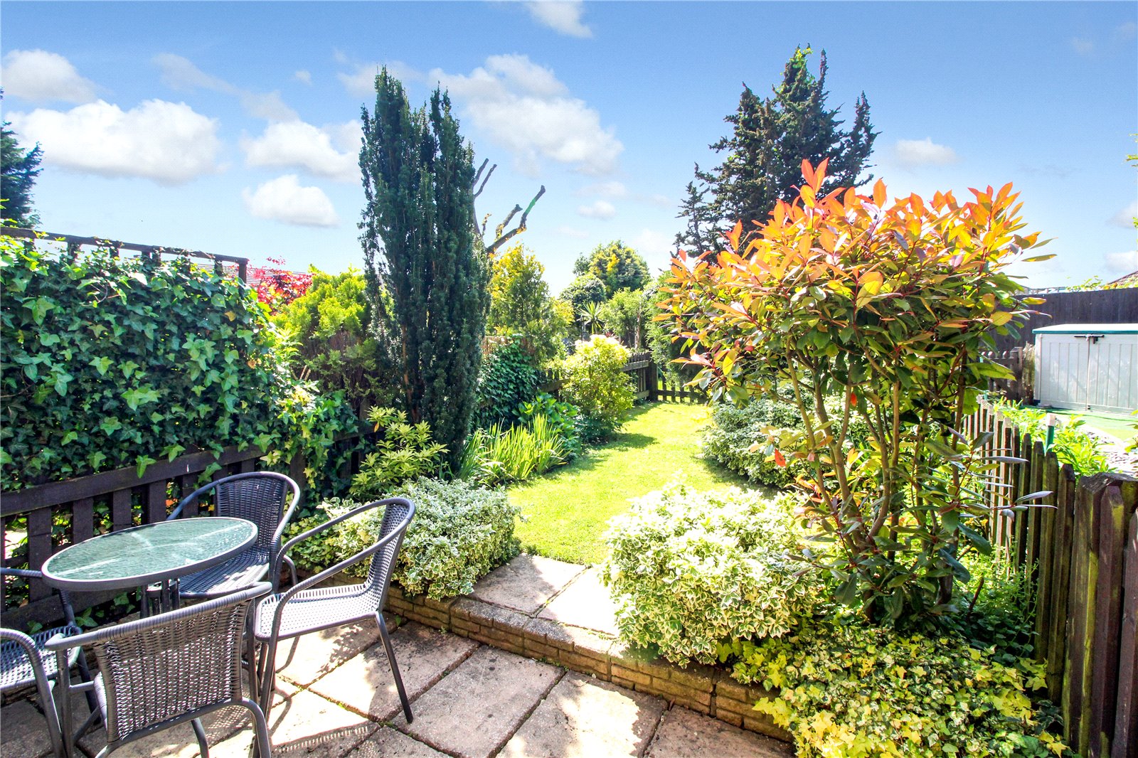 Enter via double doors from living room into well maintained rear garden, gate leading to communal garden area.